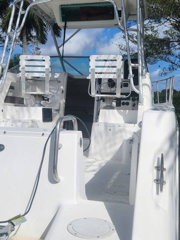 This 1999 Robalo 2420 Powerboat is in excellent condition and is the perfect combination of style, comfort, and performance, ready for both fishing adventures and leisurely days on the water. The boat comes with a full walk-around design, providing easy access around the vessel, and includes a 3-axle trailer valued at $9,000. The boat has undergone $30,000 worth of work, with invoices available for all services performed at a reputed marina, including the complete rebuild of two Yamaha 200 HP engines, which now have only 150 hours of use. Other recent upgrades include a brand-new automatic windlass, head and shower, and 3 brand-new batteries. The boat also features a Garmin fishfinder and navigation system, Lenco trim tabs, dual bilge pumps, and onboard battery charger. The full hardtop is equipped with rocket launchers and spreader lights, while the outriggers, aerated bait well, large fish boxes, and ample rod storage make it the ideal choice for serious anglers. For added convenience, it comes with shore power, fresh and raw water washdown, and a Bluetooth stereo system with four Infinity speakers for those relaxing moments on the water. Whether you're heading out for a day of fishing or enjoying a day on the sandbar, this Robalo 2420 is ready to deliver outstanding performance and reliability. Always cover-kept and professionally maintained, this boat truly stands out in excellent condition.
