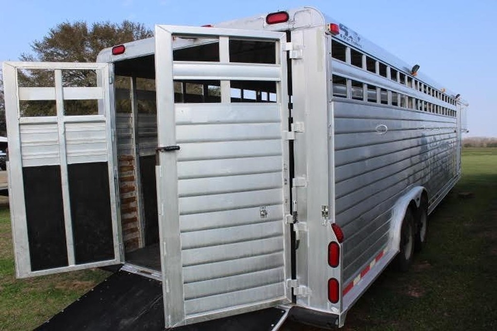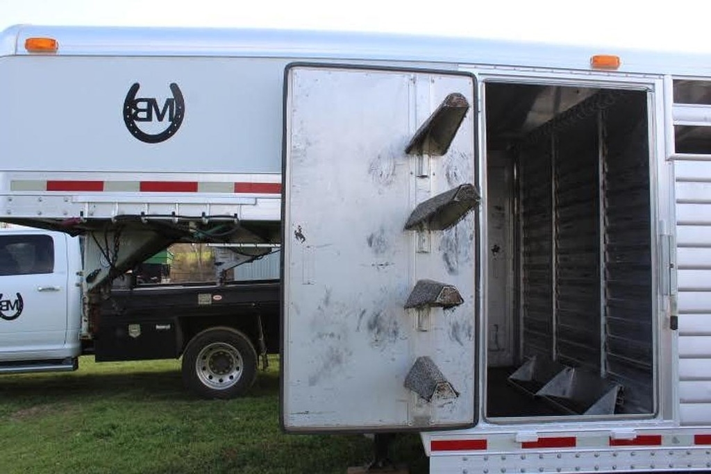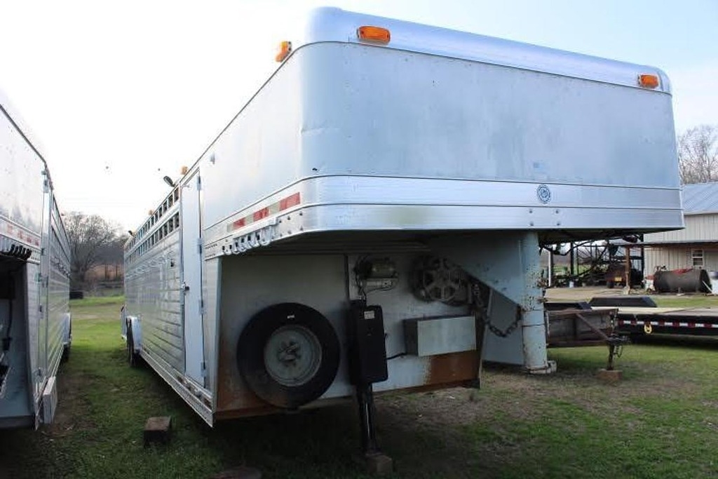 This 2002 4 Star Polo 12-horse trailer is a well-built gooseneck designed for serious hauling and durability. The trailer features a rear ramp and hydraulic jack for easy loading and setup, along with a practical three-section layout that includes generous tank room, a full nose area, and excellent overall capacity. It is equipped with a 100-gallon water tank and pump, making it well suited for extended trips, events, or large operations that require onboard water supply. With an overall length of approximately 32 feet, this trailer offers ample space while maintaining solid towing stability. A strong, straightforward setup with no living quarters, this unit is purpose-built for efficient and reliable horse transport. Seller will provide additional photos.