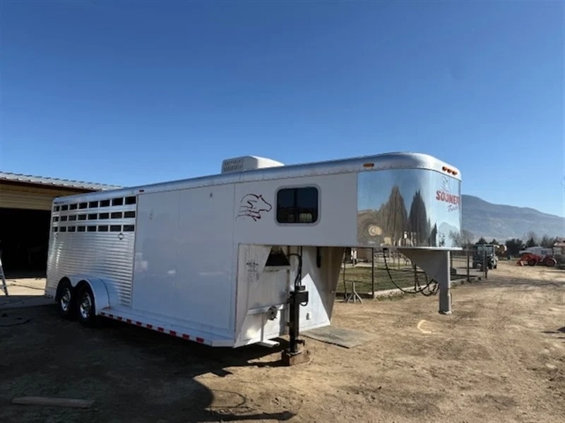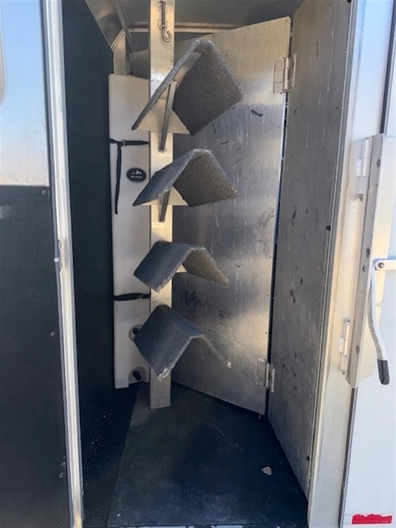 2002 Sooner Revolution 4 Horse The 2002 Sooner Revolution 4 Horse trailer offers exceptional quality and reliability for equestrian transport. Built with durable aluminum construction, this trailer provides long-lasting strength while remaining lightweight for easier towing. It features four spacious stalls designed to provide comfort and safety for each horse during travel, with padded dividers to help ensure secure positioning. Large sliding windows allow for excellent ventilation and natural light, helping maintain a comfortable environment throughout transport. The trailer also includes a well-designed tack room with ample storage space for saddles, bridles, and other riding gear, complete with saddle racks, bridle hooks, and additional storage compartments. Combining durability, thoughtful design, and dependable craftsmanship, this Sooner Revolution trailer is a practical and reliable choice for horse owners needing safe and efficient transportation. Located in Tehachapi, CA 93561 For more information, please call 833-265-6113 and mention ID 77851