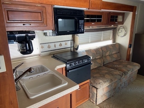 This 2004 Jayco Granite Ridge Class C motorhome offers a clean, comfortable, and functional layout that’s ready for travel and camping. Built on a Ford E-Series chassis, it features a reliable V10 engine and smooth driving characteristics, making it easy to handle on the highway and around campgrounds. Inside, you’ll find a spacious living area with a sofa and dinette, overhead sleeping space, a well-equipped kitchen with stove, microwave, and fridge, and a private rear sleeping area and bathroom. The large power awning provides great outdoor shade, and storage throughout the coach is plentiful for gear and supplies. With its practical floorplan and well-kept interior, this Granite Ridge is a great option for families, travelers, or anyone wanting a comfortable motorhome at a reasonable value.
