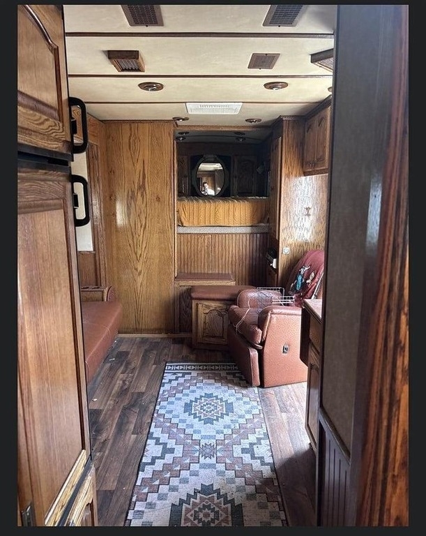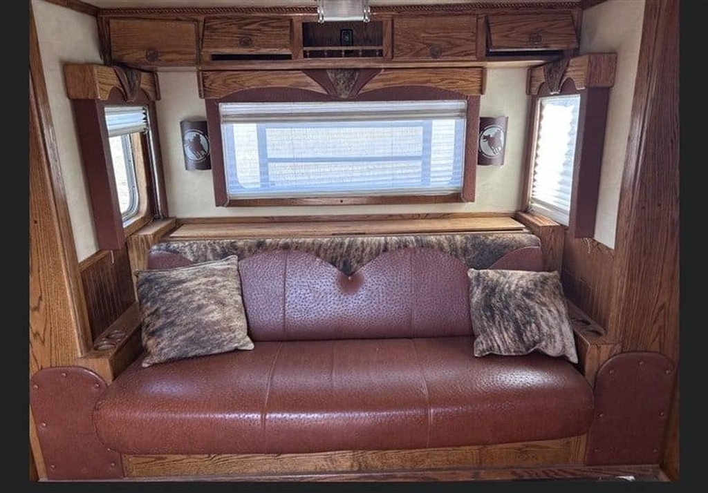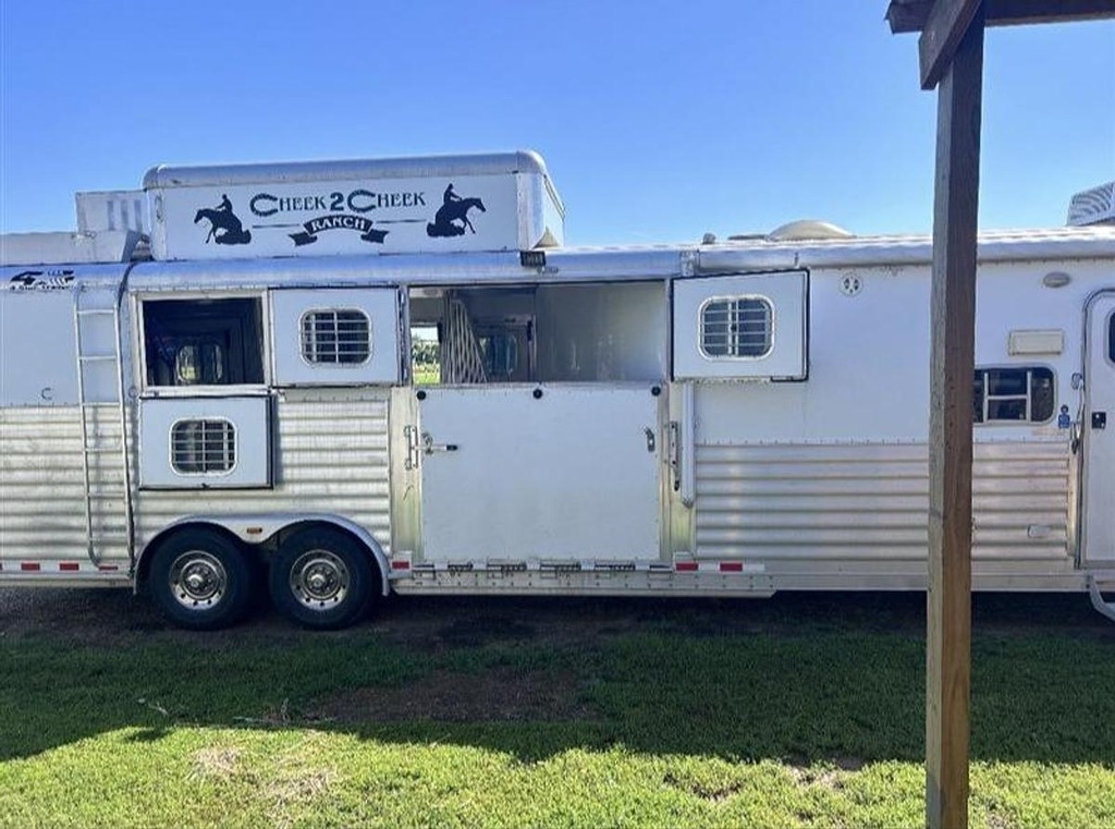 Well-maintained 2005 4-Star 4-horse reverse-load trailer with a 15' short-wall living quarters and slide-out. Horse area has WERM flooring, three mangers, one escape door, stud divider, large rear tack, and a roof hay pod. Living quarters include couch, recliner, memory-foam mattress, large fridge/freezer (gas & electric), cooktop/convection oven, ducted furnace & A/C, shower, and built-in vacuum. Equipment highlights: Onan LP generator, air ride suspension, dual hydraulic jacks, two 40-lb propane tanks, and awnings on both sides. Note: soft spot in flooring near mud room has been factored into the price.