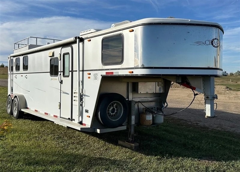 2005 Classic Gold Series 3 Horse Trailer This 2005 Classic Gold Series 3-horse trailer is a reliable and well-built hauling solution for horse owners and competitors. It features solid construction, well-designed stalls, and dependable towing performance. The trailer has been properly maintained and remains in good working condition, offering safe transport for horses and gear. A great option for riders looking for quality craftsmanship at an affordable price point. Located in Beulah, ND 58523 For more information, please call 833-265-6113 and mention ID 77842