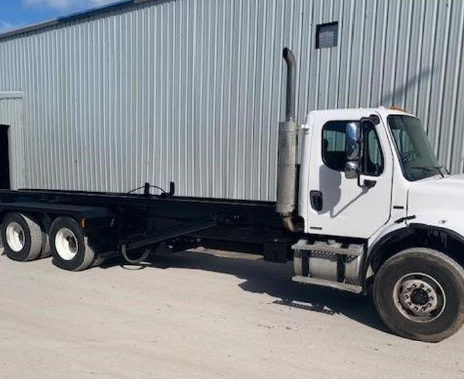 This 2005 Freightliner Business Class M2 106 Roll Off Garbage Truck is powered by a Mercedes-Benz 450 HP engine paired with an Eaton-Fuller 8LL manual transmission. The truck features a 6x4 drive, tandem axles, and left-hand drive setup. Odometer shows 995,706 km (618,703 miles). Ready for service, this heavy-duty unit offers performance and value for your waste or recycling operation. Located in Orillia, ON Canada LV36Z9 For more information, please call 833-265-6113 and mention ID 20972