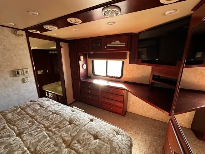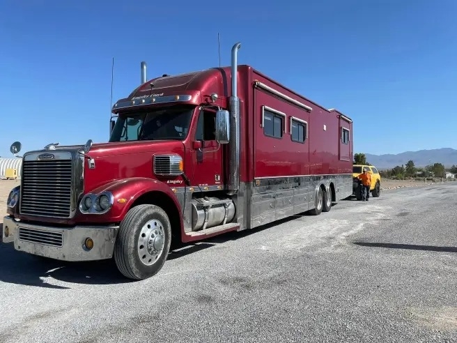 2005 Kingsley Custom Coach This 2005 Kingsley Custom Coach is a remarkable 49-foot toterhome built on a Freightliner Coronado chassis with a 14L Series 60 engine producing 580 horsepower. It has 138,598 miles and no DEF, delivering both power and reliability. The coach includes three slide-outs, AquaHot system, Onan 10kW generator, and a 15K towing capacity thanks to its electric rear garage ramp. The heated garage measures 110”L x 62”H x 90”W—large enough for a SmartCar. Inside, you’ll find residential comforts including a washer/dryer, macerator toilet, full kitchen with refrigerator, microwave/convection oven, and three HVAC units. Recent updates include new Cooper tires, LED heated headlights, inverter, and upgraded flooring. This coach drives beautifully, has been regularly maintained, and comes from proud third owners. Ready to travel, live, and impress anywhere it goes. Located in Pahrump, NV 89060 For more information, please call 833-265-6113 and mention ID 68101683