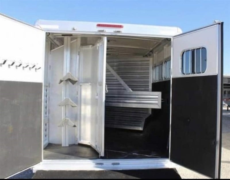 This 2006 Cimarron Norstar Three Horse Trailer with Living Quarters is ideal for the weekend warrior looking for a dependable and comfortable rig. I purchased this trailer last year but realized I really need a four-horse setup. It pulls great with my 3/4 ton pickup and I’ve never had any issues with it. The trailer features mangers, a ramp, and a convenient pass-through door to the living quarters, which has a short wall layout (10' or less). It shows some typical wear and tear but is in great shape overall. Current pictures are from when I bought it—I'll be adding updated ones as soon as the weather clears.