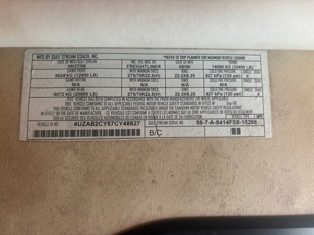 This 2007 Gulf Stream Coach Friendship G8 8412 Class A Motorhome is a well-maintained and extensively updated coach that’s been thoughtfully upgraded for comfort, reliability, and extended travel. It comes with all original manuals and features a strong electrical setup with 100 watts of solar, 800 shore power, and 200 starting batteries that are just two years old. The coach rides on six newer tires, including Michelin fronts and four 16-ply Hankook rear tires, with brakes, shocks, and front drums replaced approximately two years ago. Recent mechanical and system updates include a serviced transmission, engine, and CAT generator, a new exhaust system, radiator boil-out with a new radiator and thermostat, new inverter, new interior water pump, all new belts, and a new interior exhaust fan. Inside, the living space has been refreshed with a new sofa and sofa recliner, along with two new Smart TVs (32” and 42”), surround sound, and an in-motion satellite TV system with Winegard Gateway internet. Additional highlights include a backup system, a Demco braking system for towing a vehicle, and dual-side fueling access from either the driver or passenger side. This Friendship G8 is a solid, road-ready Class A with extensive updates already completed, making it an excellent choice for comfortable and confident travel.