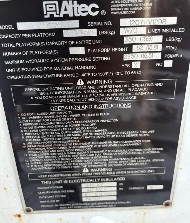 2008 Altec AA652L Mounted on Freightliner M2 106