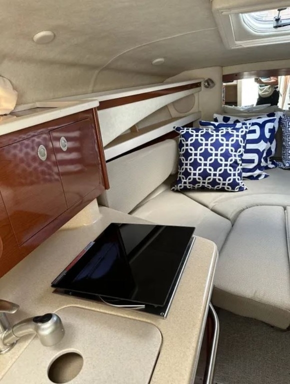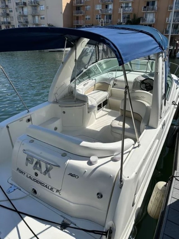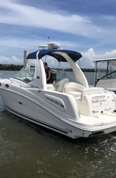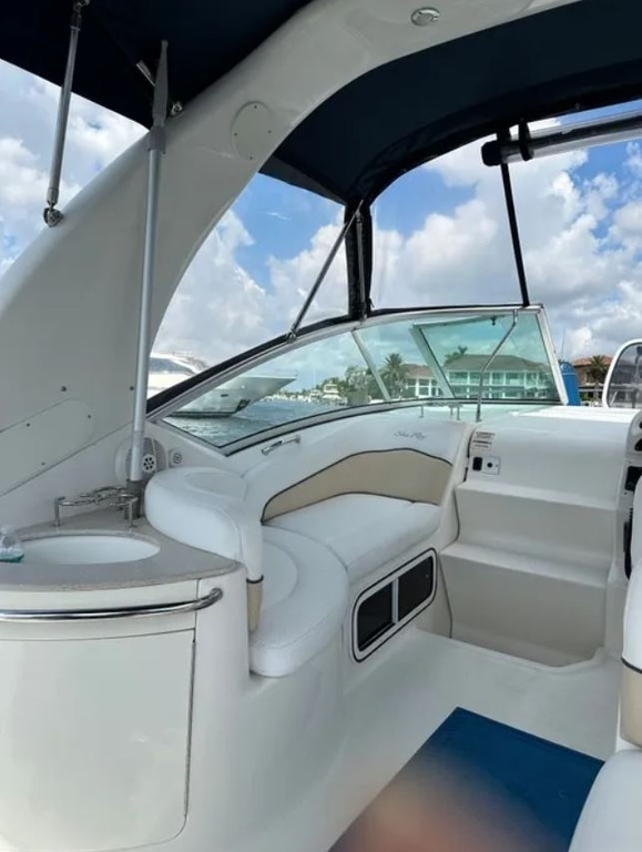 This 2008 Sea Ray Sundancer 260 is a well-equipped cruiser designed for both day trips and overnight stays. Powered by a MerCruiser 350 Magnum MPI Bravo III producing 300 horsepower with approximately 190 engine hours, this vessel delivers strong and reliable performance. Measuring approximately 29 feet overall, it offers a spacious cockpit, comfortable swim platform, and premium Sea Ray ergonomics. Features include a bow thruster for easy docking, Garmin GPS, translucent deck hatch, transom storage, and regular professional bottom maintenance. Lightly used and well cared for, this Sundancer is an excellent choice for cruising and recreation.