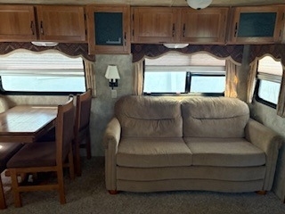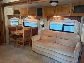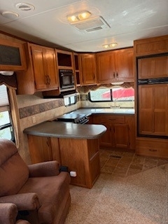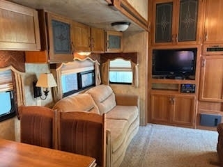 This 2010 Keystone Montana Mountaineer Fifth Wheel offers a spacious and comfortable layout, perfect for extended stays or weekend getaways. The exterior features a large awning for shaded outdoor living, while the interior is designed with warm wood cabinetry, ample storage, and residential-style finishes. The kitchen includes a center island with plenty of counter space, refrigerator, microwave, oven, and stove, making meal prep easy on the road. The living area provides cozy seating, large windows for natural light, and a comfortable setup for relaxing or entertaining. Additional features include a queen-size bed, plumbing inside the RV for a clothes washer, and significant under-belly pass-thru storage for all your gear and supplies. With its quality construction and thoughtful design, this Montana Mountaineer delivers both durability and comfort, ready for your next adventure.