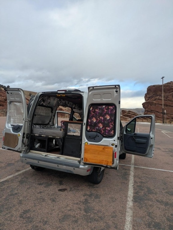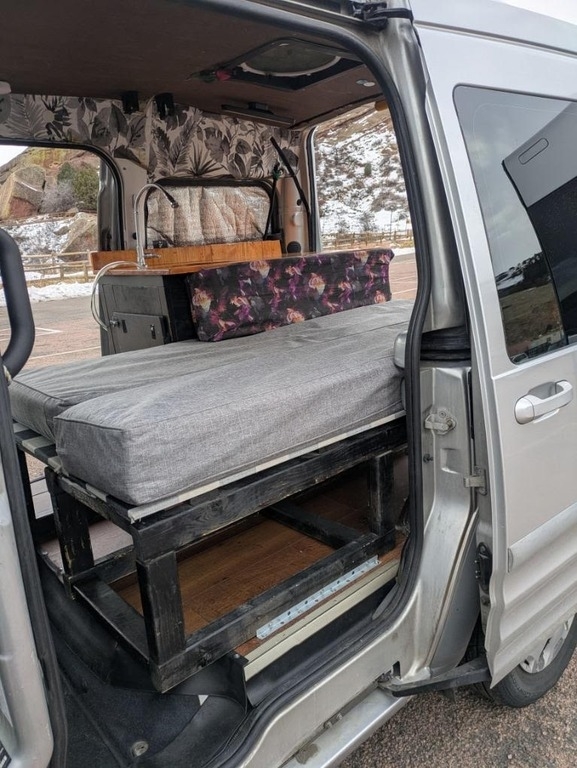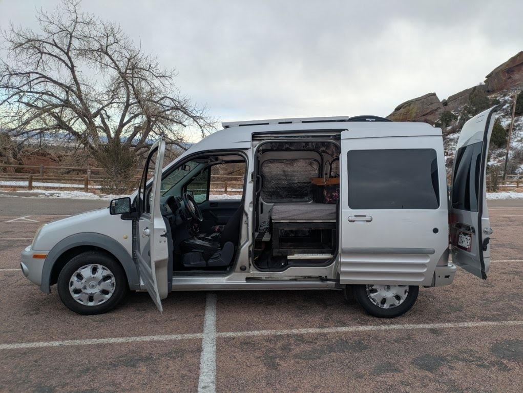 Meet Persephone, a 2011 Ford Transit Connect Wagon XLT Premium custom-built campervan that was designed for life on the road. Built out in the fall of 2021, she served as my home and travel companion for a year. I'm now selling her because I’ve settled back in Colorado and am looking to upgrade to a 4x4. Persephone is ready for her next adventure. This van features power windows, keyless entry, cruise control, and averages 22 MPG, making her a practical and comfortable road companion. She’s fully equipped with privacy-enhancing features like 5% tinted windows, window coverings, and a cabin curtain. Inside, you'll find sheep’s wool insulation, a versatile twin-sized bed that converts into a bench seat, and a custom countertop with a sink that drains into the environment, running water, and a 6-gallon clean water tank. Powered by two 100W solar panels and an EcoFlow River Pro portable power station, Persephone is ready for off-grid living. She also has a 20Qt 12V fridge, an aftermarket Kenwood touchscreen radio with device mirroring and Bluetooth, and a MaxxAir Maxxfan Deluxe Roof Vent Fan. Persephone loves being on the move, and she’s looking for a new owner who will continue her journey.