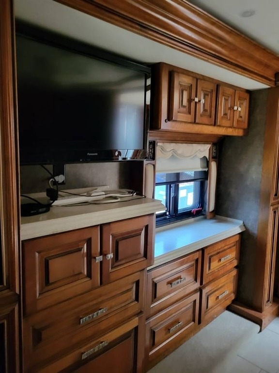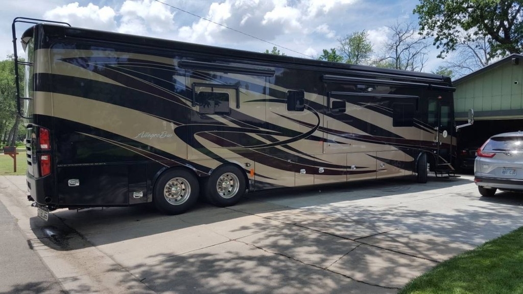 Purchased in 2012 with 48,097 miles, the bus has seen limited use, as reflected in its current mileage and the excellent condition of its exterior paint. It has been meticulously maintained in covered, environmentally protected storage, and both the batteries and tires have been recently replaced. Complete ownership manuals will be provided. Key features and luxuries include: - Performance & Exterior: Powerglide Chassis with a Cummins 450HP engine, full-body paint in Rustic Canyon, power awnings, backup and side cameras, and keyless entry (includes two sets of keys with remotes). - Main Cabin: Four slide-outs, ceramic tile flooring, Corian countertops, cherry cabinetry, leather furniture, power shades, and dual sofas that convert into queen and full-size beds. - Kitchen & Appliances: Full-size refrigerator, dishwasher, two microwaves, and a stacked washer and dryer. - Climate & Systems: Three air heat pumps, Aqua-Hot heating system, and a satellite dish. - Bedroom & Bath: Half-bath in the main cabin. The rear master suite features a king-size bed with under-storage, a ceiling fan, a full-size closet, and a master bathroom with dual sinks. - Entertainment & Storage: Four interior televisions plus an outside entertainment center with surround sound and a dedicated television. The bus offers ample interior storage and full pull-out bin storage underneath. Please let me know if you would like to schedule a viewing or if you have any questions. Located in Wichita, KS 67220