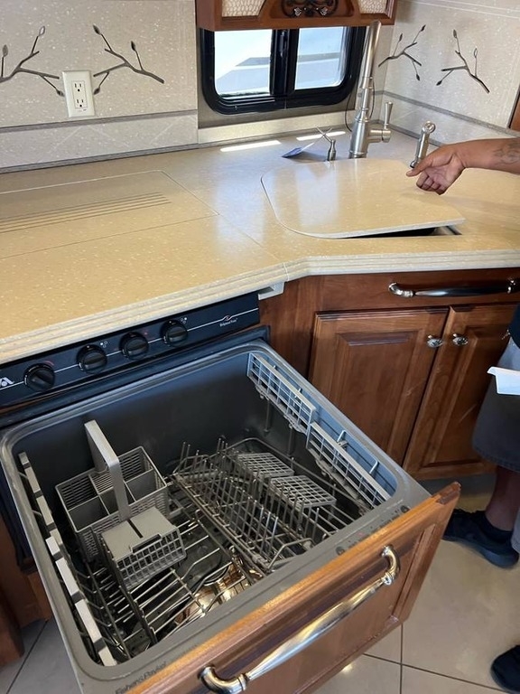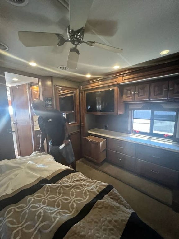 This 2013 Tiffin Phaeton 40QBH is a luxury Class A diesel motorhome built on a Freightliner Custom Chassis (FCCC) and powered by a Cummins 380 EPA10 engine, offering a smooth and powerful driving experience with approximately 52,000 miles. Designed for comfort and extended travel, this coach features four hydraulic slide-outs that create a spacious and well-appointed interior finished in Gold Coral full-body paint with elegant English Chestnut cabinetry and a distinctive glitter interior. The living area includes newly upholstered driver and co-pilot seats along with a couch that converts into a full-size Flexsteel fold-away bed, a Euro recliner, fireplace, and multiple entertainment options including an exterior LCD TV, dash overhead TV, and satellite radio. The kitchen is equipped with a cooktop, convection microwave, and a tankless water heater, while the dinette doubles as a convenient computer workstation. Additional features include three A/C units, a 10kW Onan generator with approximately 543 hours, stacked washer and dryer, central vacuum system, exterior slide trays for easy storage access, Hadley air horns, in-dash navigation, and automatic leveling. The bedroom offers a king memory foam mattress for added comfort, making this Phaeton a fully equipped, high-end motorhome ready for travel or full-time living.