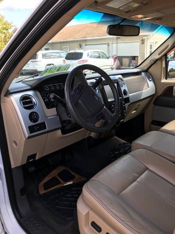 2013 Ford F-150 Lariat in a stylish white finish with gold trim, offering a perfect mix of rugged capability and upscale comfort. This SuperCab pickup is equipped with a powerful V6 twin-turbo engine, providing excellent performance and fuel efficiency, ideal for both daily driving and heavy-duty tasks. The automatic transmission includes a manual shift option, giving you more control over your driving experience when needed.
