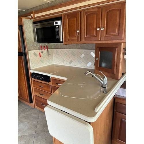 The 2013 Winnebago Adventurer 37F Class A Motorhome offers spacious luxury, smart functionality, and high-end features designed for extended travel or full-time living. This well-maintained coach features three slide-outs, including a full-wall slide, providing ample room throughout. Inside, you’ll find a king-size bed with a ceiling fan in the private rear bedroom, along with a full bath and a convenient half bath—both equipped with porcelain toilets. The kitchen is outfitted with a 4-door refrigerator/freezer with ice maker, a convection microwave, and a 3-burner propane cooktop. Entertainment is top-tier with three Samsung flat screen TVs, a surround sound system in the living area, and a convertible couch for added sleeping space. Additional highlights include dual captain's chairs, dual A/C units with heat pump functionality, a 5.5KW Onan generator, and a satellite TV dome with cable-ready setup. The coach also comes with a washer and dryer, and has been thoughtfully maintained with recent upgrades such as a new chassis battery (Aug. 2021) and a professionally resealed roof at Lazy Days RV in 2022 (a $5,000 service). Winterization was last performed by Camping World in 2022, ensuring it's been properly cared for and stored.