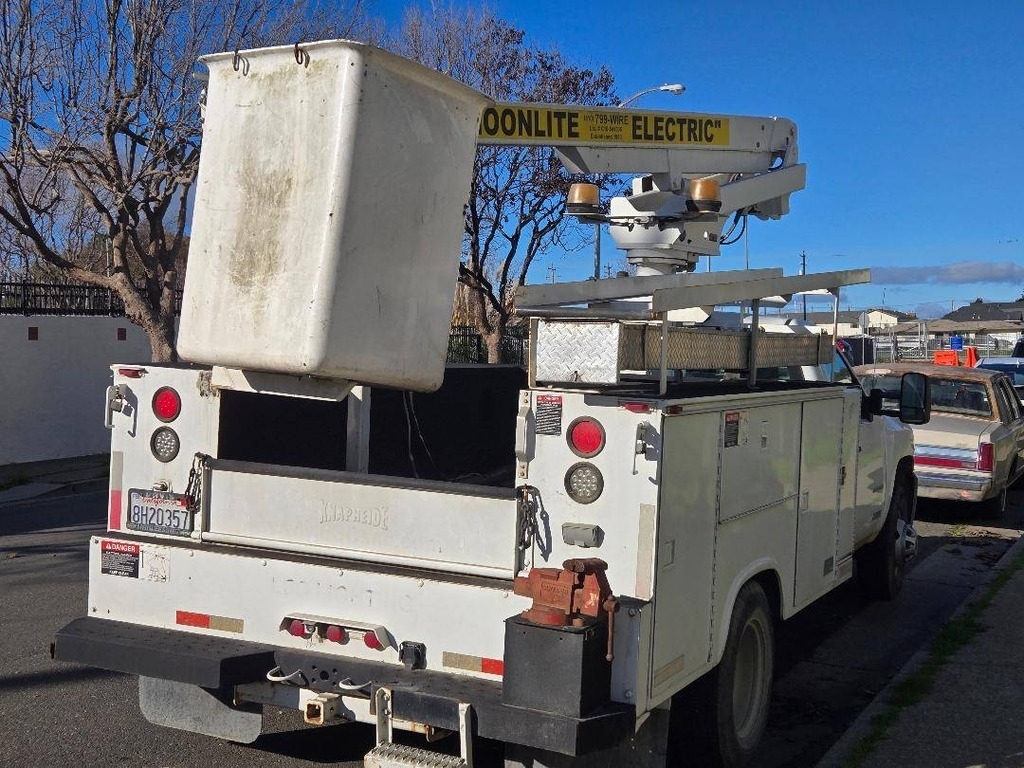 This 2014 Chevrolet 3500 HD Bucket Truck is a low-mileage, well-maintained utility vehicle built for dependable performance and professional use. It is powered by a Duramax 6.6L turbo diesel engine paired with an Allison automatic transmission, delivering strong pulling power and long-term reliability. The truck is equipped with an Altec AT200A-CS bucket, making it ideal for electrical, lighting, signage, and maintenance applications. Showing just 36,900 miles, it features new tires, brakes that are like new, dual fuel tanks, and dual rear wheels for added range and stability. The cab offers three seats, and the truck runs like new. It comes with a clean title and current smog certification in hand, making it a turnkey bucket truck ready to go to work.