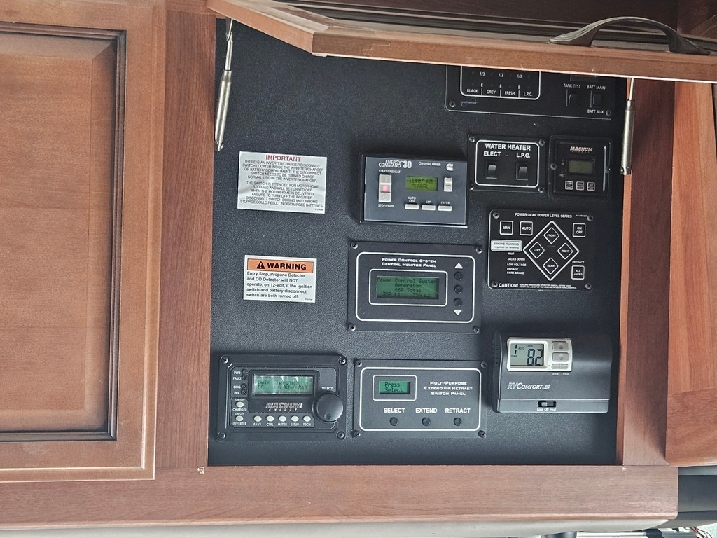 2014 Fleetwood Expedition 40X A fully loaded, upgraded 2014 Fleetwood Expedition 40X with 3 slide outs (Living/kitchen both sides and bedroom). Rear diesel engine model Cummins ISB 6.7 360HP; Allison 3000 automatic transmission. 55,600 miles as of 11/2025. Two new starter batteries installed 1/2026. Ready for boondocking, exploring our country or living in year-round. Front mounted Onan GENERATOR 8HDKAK-1046N Quiet diesel 8000 watts 66.6 amps (550 hours); Regularly maintained. 5375-watt solar panels with Magnum Energy Inverter also known as Sensata Technologies Model #MS2812. Charge Controller is a Magnum PT100 all installed by Briter Products, South Bend, Indiana (2022). 6100-amp Lithium-Ion batteries. 3 roof-top air conditioners; front and rear auto wheel balancers, Front and rear KONI shocks (2021. Remco 5.3gpm water pump; Lippert hydraulic levelers with snap pads. This unit is set up for Blue Ox towing & Air Force One braking system. Super Steer sway bars; heavy duty bell crank; Safety Plus steering bar and anti-sway motion control units front and rear. Rear mounted Fleetwood rock guard. South Wire 50amp surge guard model #34950. Power Watchdog 50-amp Smart Surge Protector Model# PWD50-EPO. Both are used from pedestal to RV. Electric mirrors with cameras visible on screen at dash. Cameras also activated with turn signals and from rear in Reverse mode. Electric awnings on side and over entry door. 100-gallon fuel tank; 100-gallon freshwater tank; 75-gallon grey water holding tank; 50-gallon black water holding tank; 38-gallon mounted propane tank.