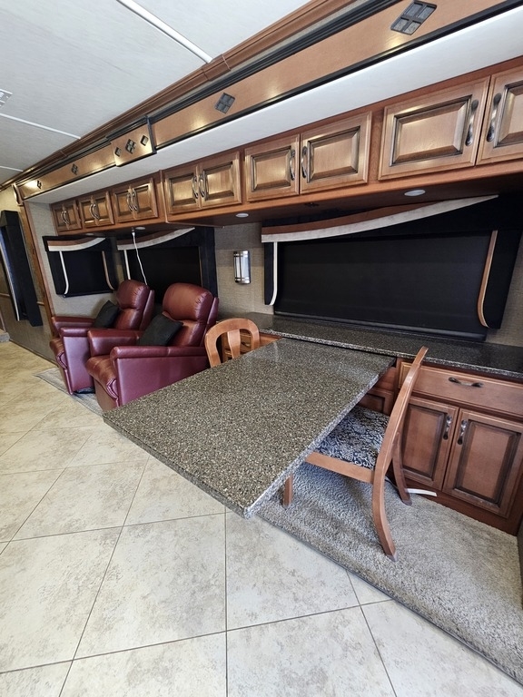 For comfortable convenient living and traveling, the interior offers upgraded Captain and passenger chairs with swivel and heat (2022); upgraded couch with lower storage and can lay flat for sleeping. 2 wall hugging, adjustable headrest, electric recliners with USB. Located in Las Vegas, NV 89131 For more information, please call 833-265-6113 and mention ID 68101779
