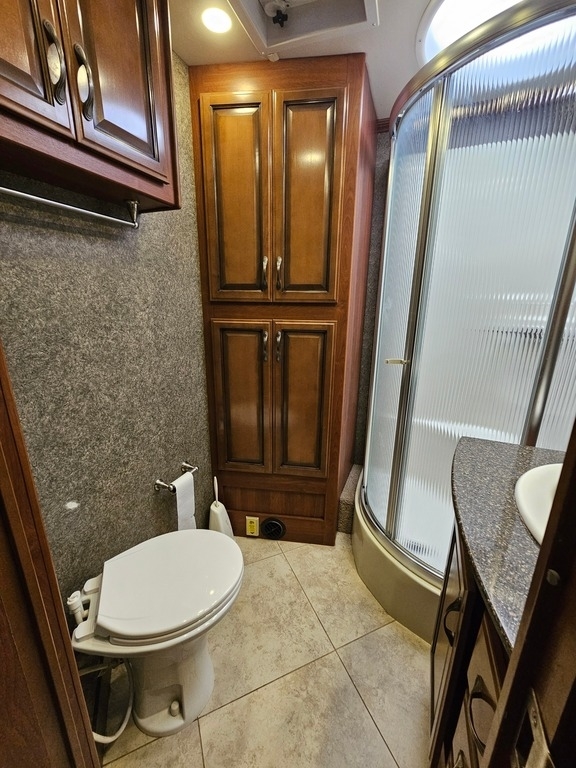 Multiple storage compartments outside for your toys and necessities including a compartment with sliding tray for access from either side. Front custom bra and rear ladder. LED lights under motorhome for that special ambiance.