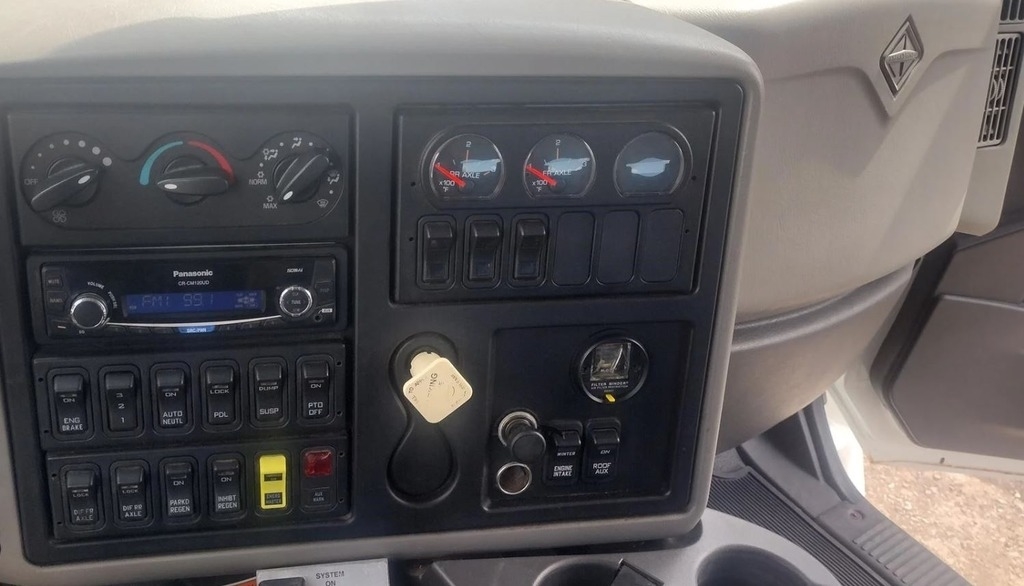 This 2014 International WorkStar 7500 SBA 6x4 Crew Cab and Chassis is powered by an International MAXXFORCE 10 9.3L 6-cylinder turbo diesel engine paired with a 6-speed automatic transmission. Built for strength and reliability, it features rear wheel drive, air ride suspension, aluminum wheels, mud flaps, and power steering for smooth operation. The hard top cab seats four passengers comfortably with two leather captain’s chairs up front and a rear bench seat, complemented by cloth upholstery in the front. Comfort and convenience options include air conditioning, AM/FM radio, cruise control, power locks, power windows, and dual shift mode. A solid and versatile chassis ready for your next build or heavy-duty application.
