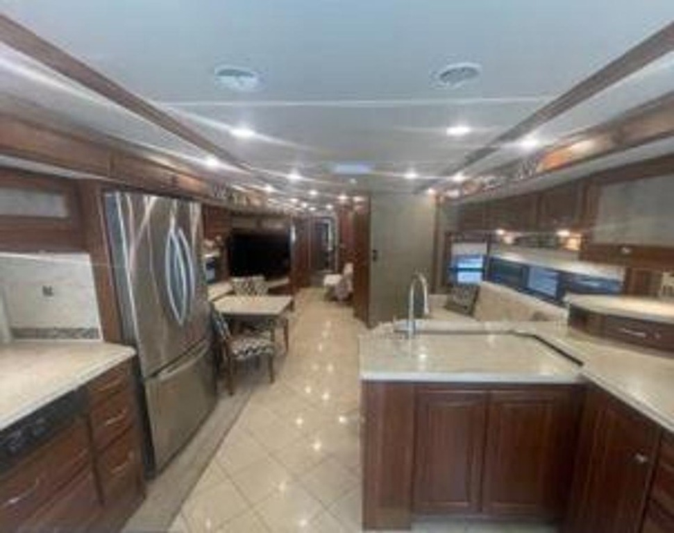 Interior Features: - Large primary bedroom accommodating a king-size bed. - Great interior finish, featuring a fireplace. - Residential refrigerator, pot filler over the range, and excellent kitchen storage. - Washer/Dryer unit located in the Master Bath. - Bath and a half configuration, with the main bath featuring a large glass shower. - Tile flooring throughout. - Natural cherry cabinets and Corian countertops. - L-shaped leather sofa sleeper. - Day and night shades. Technology and Entertainment: - Three flat-screen TVs. - Home theater sound system. - Backup camera and side cameras. - Keyless entry. Mechanical and Exterior Features: - Onan 8KW Diesel Generator. - Automatic HWH leveling system. - Three roof air conditioners, all with heat pump capability. - Power electric main awning and additional slide-out awnings. The slide awning material is new. - Exterior basement storage, including a large slide-out tray. - 2000-watt inverter and a solar panel for battery charging. - Fog and docking lights. - Air horns. - Heated mirrors. - Cruise control and tilt steering. - Swiveling Captain Chairs. - Newer tires. - Full paint job. Recent Updates: - Six new house batteries were installed in 2023. - The two engine batteries were present when we purchased the coach.