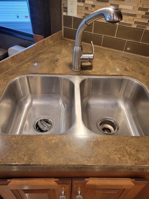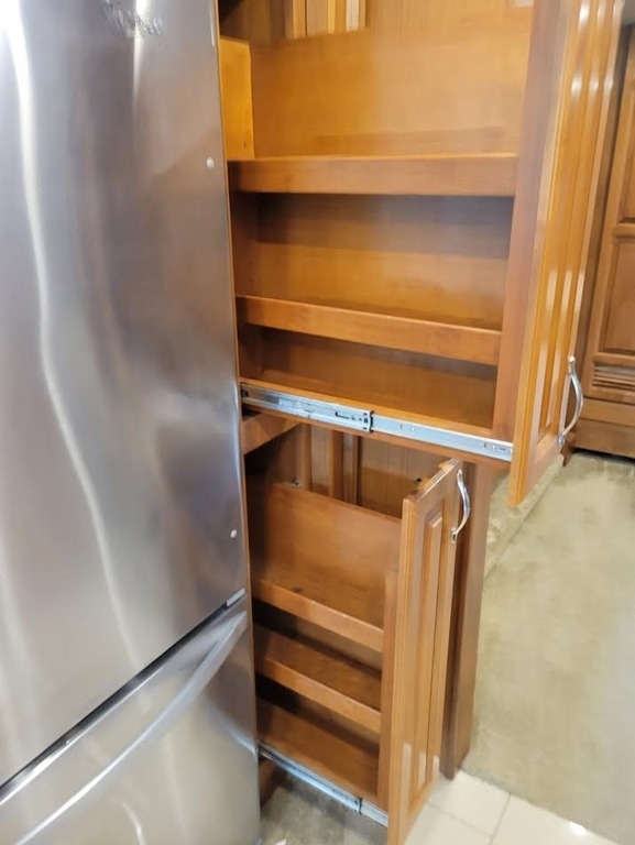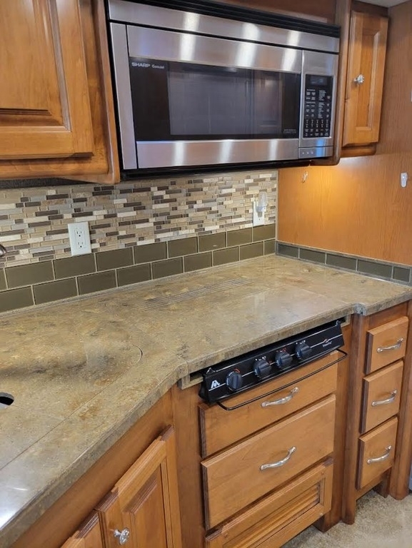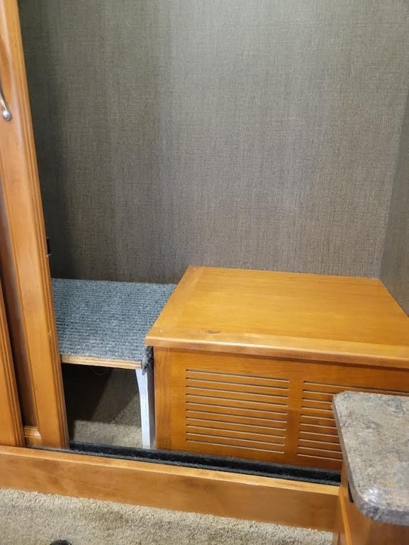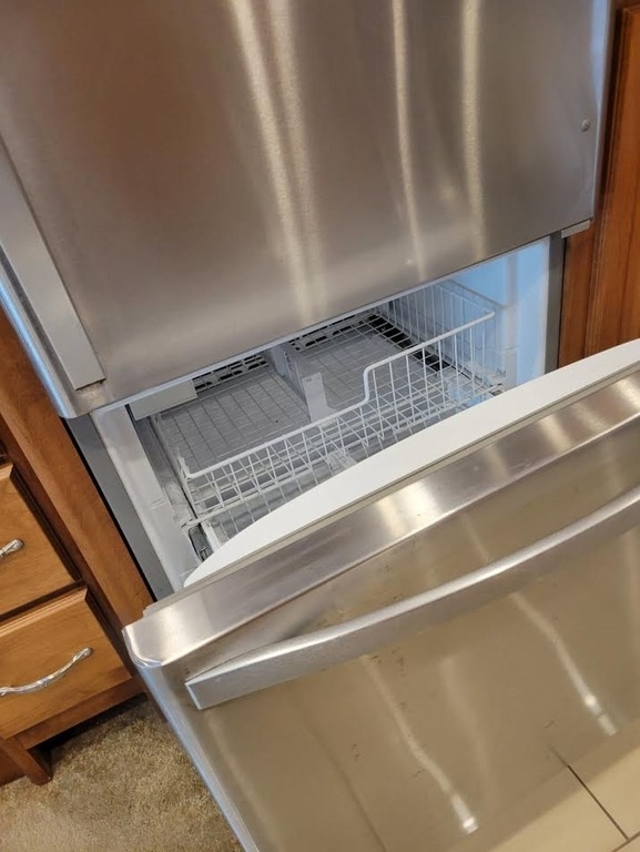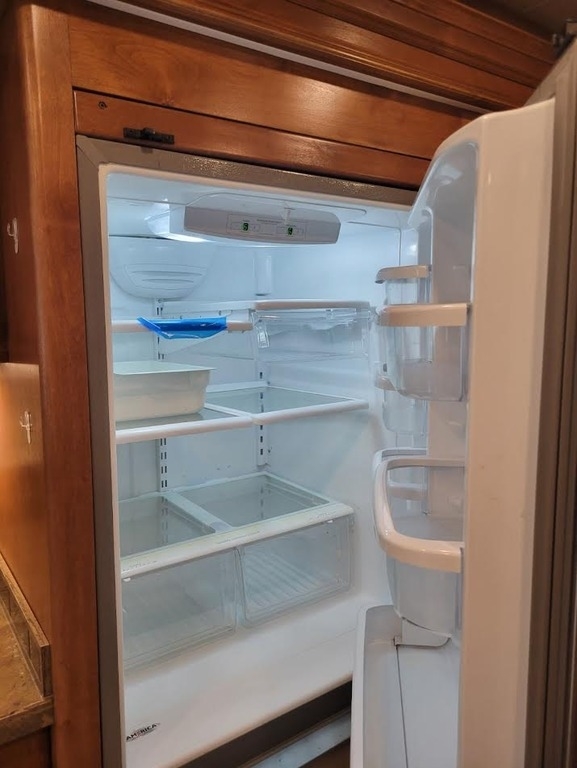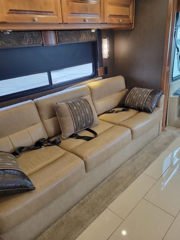 - Interior: Professionally reupholstered seating, electric recliner, and natural alderwood cabinets with Corian countertops.