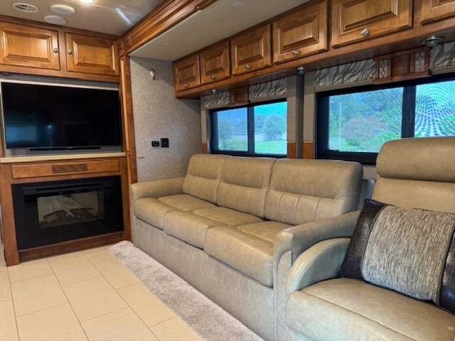 This 2017 Tiffin Allegro Red 33AA is a beautifully maintained, non-smoking coach that has been meticulously cared for with regular service and full records available. Built on a Freightliner chassis and powered by a Cummins 360HP diesel engine, it delivers reliable performance and smooth handling. Equipped with a TST tire pressure monitoring system, Pepwave MAX Transit Duo Cat 12 router with Parsec Husky Pro 7 antenna, and Safe-T-Plus steering assist, this coach is ready for extended travel. The spacious interior includes a pull-out dinette with four chairs, sofa with pull-out queen bed, recliner, and king master bed with spring-assisted under-bed storage. Comfort features abound — stacked washer and dryer, electric fireplace, residential refrigerator, gas cooktop and oven, convection microwave, and four TVs with in-motion satellite dish and Wally Dish Network tuner. Additional upgrades include new Michelin tires (2/21/24), new dash AC compressor and drier (11/4/24), new DEF head (11/4/24), new carpet (2/24/23), and new motor and gears for the entry stairs (2/28/25). Other highlights include power awnings, central vacuum, Blue Ox 10,000 lb. tow system, ceiling fan, wheel covers, and in-dash rear and side cameras. This Allegro Red offers the luxury, comfort, and reliability that Tiffin is known for — a true turn-key Class A motorhome ready for its next adventure.