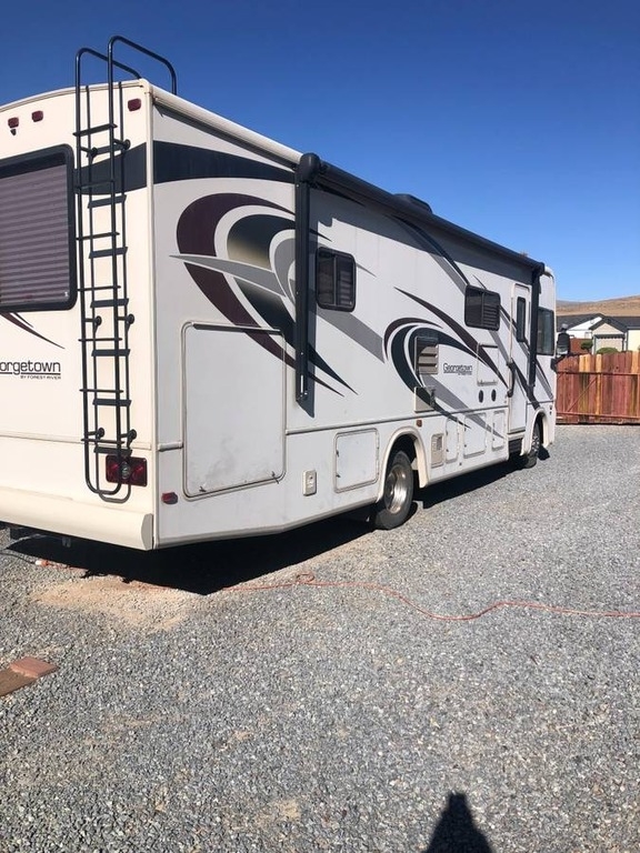 This 2017 Forest River Georgetown 30X3 Class A Motorhome is a low-mileage luxury coach with only 5,523 miles and 48.7 generator hours. Built on a Ford V-10 gas chassis, it features two slide-outs, automatic hydraulic leveling jacks, and comfortable sleeping for up to six. The interior includes a king-size bed, twin recliners with a hide-a-bed, electric loft bunk, dinette sleeper, and three TVs. Enjoy 30-amp service, a dual-control water heater, external kitchen, and 1 A/C unit. Recent updates include new batteries (May 2025). Additional features include tow hitch receiver, fresh/sewer hoses, and full functionality throughout. Well cared for by the second owner—priced to move. Located in Sun Valley, NV 89433 For more information, please call 833-265-6113 and mention ID 05118