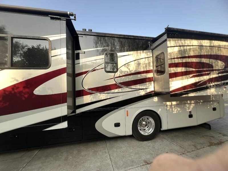 2017 Tiffin Motorhomes Allegro RED 33AA The 2017 Tiffin Allegro RED 33AA is a luxury Class A motorhome combining performance, comfort, and craftsmanship. Powered by a 360 HP 6.7L Cummins diesel engine paired with an Allison 6-speed automatic transmission, it’s built on a custom Freightliner/Daimler chassis with air-bag suspension for a smooth, confident ride. This coach shows only 16,172 miles and includes 4 slide-outs, automatic leveling, rear and side-view cameras, an 8 kW Onan diesel generator, 10-gallon gas/electric water heater, and a 10,000-lb towing capacity. Inside you’ll find residential luxury throughout—Whirlpool refrigerator, king bed with ceiling fan, solid-surface counters, convection microwave, 3-burner range, dual ACs, fireplace, washer/dryer hookups, and multiple TVs. The Allegro RED offers abundant inside/outside storage, 4 new house batteries, and 200 watts of solar power, making it ideal for long-term travel in comfort. Located in Bakersfield, CA 93306 For more information, please call 833-265-6113 and mention ID 68101710