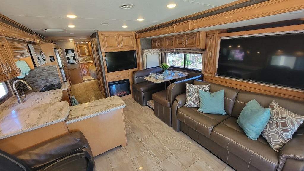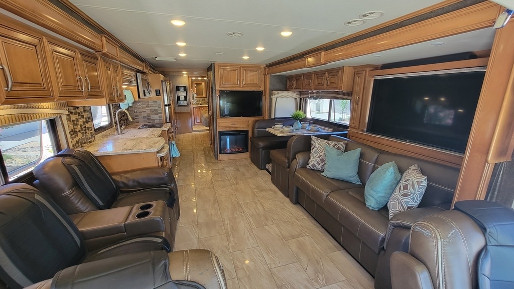 2017 Thor Aria 3901 Class A Motorhome This 2017 Thor Aria 3901 is a luxury diesel Class A designed for long-haul comfort and family-ready travel, with just 39,500 miles and a spacious bunkhouse-style layout that sleeps up to 8. Inside, you’ll find a high-end residential feel with premium finishes, a fully equipped kitchen for real meal prep, and a comfortable living area built for relaxing or entertaining on the road. The bedroom is set up as a true retreat with ample storage, while the bathroom provides the everyday comforts you expect—including a proper shower setup. With three slide-outs, this coach opens up into a roomy interior that feels far larger than most in its class, and the exterior offers strong storage capacity for gear, tools, and travel essentials. This one also includes a Blue Ox towing package, making it ready for hauling a toad and setting up camp with ease. Located in Beaumont, CA 92223 For more information, please call 833-265-6113 and mention ID 68101775