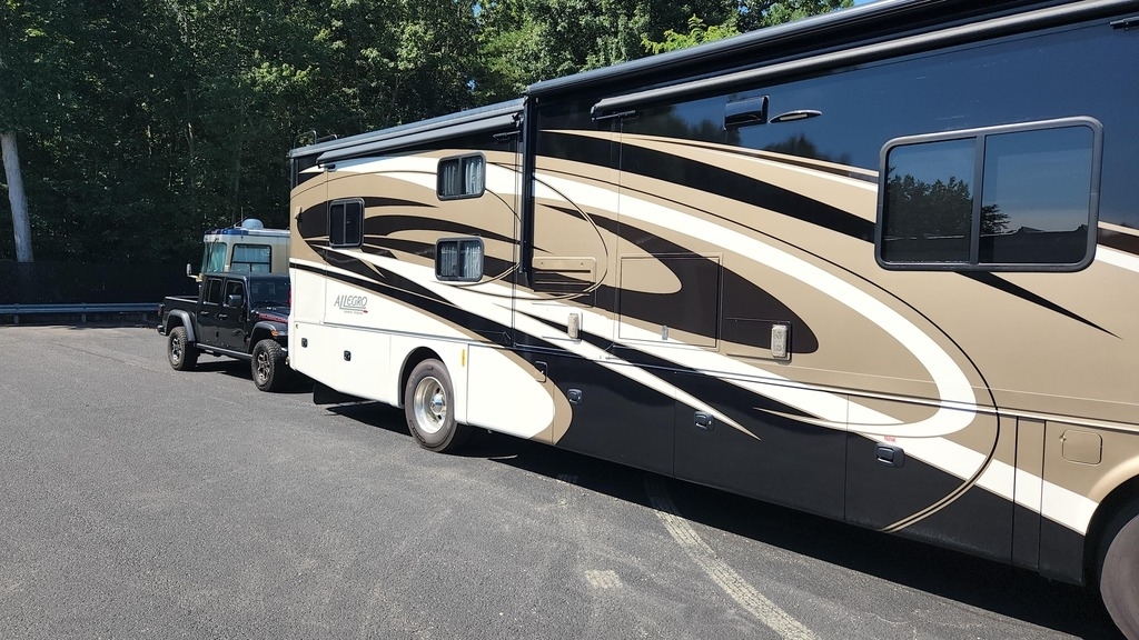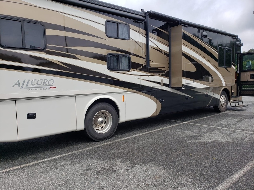 This 2017 Tiffin Motorhomes Allegro Red 38QBA Class A Motorhome is a well-equipped, family-friendly diesel pusher designed for comfort, performance, and extended travel. Powered by a 360 HP Cummins 6.7L engine paired with an Allison 3000 MH automatic transmission, it also features a Safe-T-Plus steering stabilizer and Koni shocks for confident handling and a smooth ride. Power and utility highlights include an 8,000-watt Onan generator, RV roof armor sealant, and four slide-outs with new slide toppers, with the generator, chassis, and motor serviced in May 2025. This coach is boondock-capable and equipped with electric and propane heat and hot water, and the tires were replaced in February 2022. The interior offers flexible sleeping arrangements with a queen bed, bunk beds with DVD player and wireless headphones, an air sleeper sofa, a jack-knife loveseat, and a booth dinette that converts to a small bed. Additional amenities include an outdoor TV, Splendide washer and dryer, gas stove and oven, underbelly lighting, entryway carpet, and a dash protector. Technology features include a portable Starlink system and an in-motion satellite setup that has never been used. The unit is located near Sarasota, Florida, and a BlueOx towing system with a Patriot brake system is available if desired (mount and lighting for the braking system required).