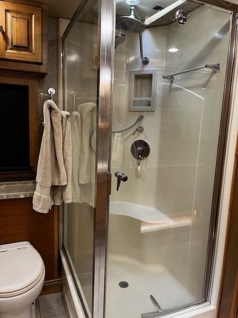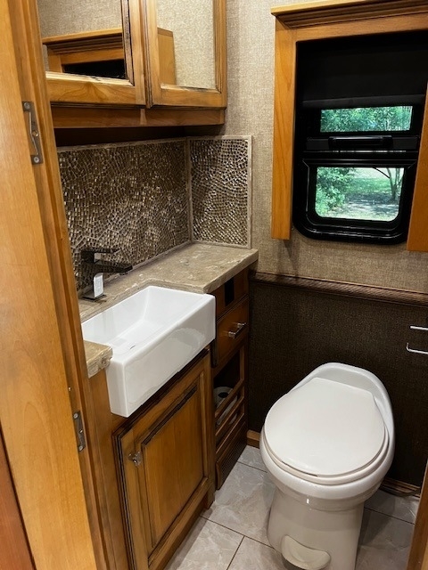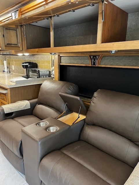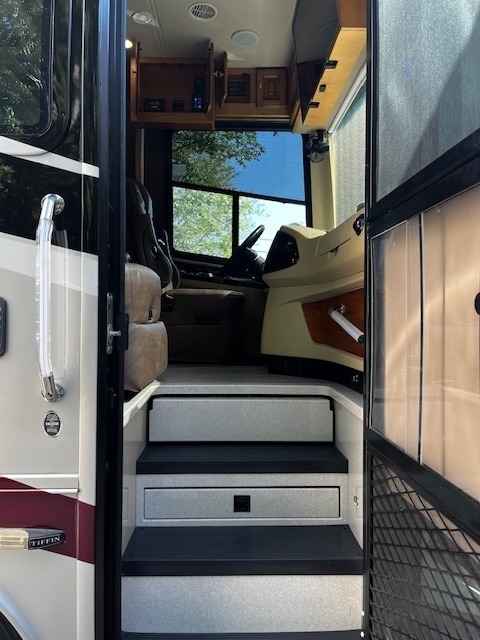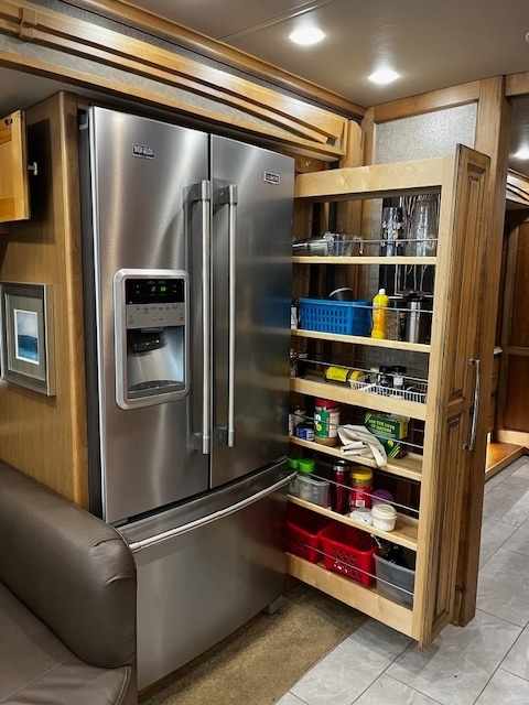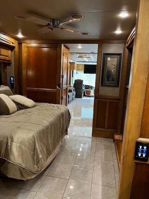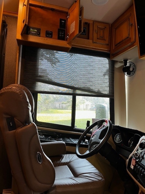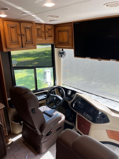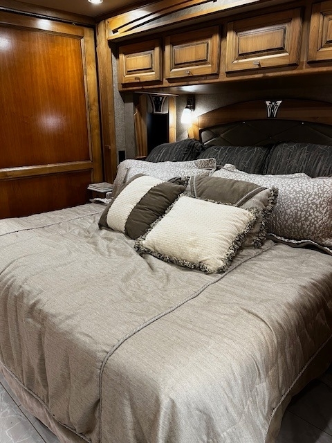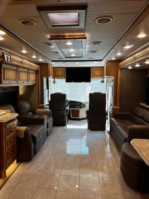 Four Slides, Amber Glazed all solid hardwood (oversized) cabinets, doors, trim & valences (upgrade option), 380hp Cummins ISL 9.0L diesel engine, 6 speed Allison transmission with 1150lbs of torque and fuel saving mode, Onan 10,000w diesel generator (slide out tray equipped) with auto gen start, large water and waste tanks with DC powered water pump, auto leveling system, maximum size tires (295/80 22.5), stainless steel residential refrigerator freezer,4 LED TV's, ultra-leather sofa with queen size pull out air mattress, twin adjustable leather lounge seats, in coach vacuum system, dinette table with dual bench seating, full length slide out pantry, a must see interior light system, all tile flooring throughout coach, bedroom ceiling fan, in-dash GPS navigation with CD/ FM AM & satellite radio system, surround sound entertainment system ,large outside LED TV, pass through basement storage with dual basement slide-out trays (upgrade option),10,000lb hitch, three low profile 15k AC units w/ heat pumps, Sunlit Sand full body paint, all solid hardwood cabinets, 4G Internet, IN-Motion Satellite, 2000w pure sine wave inverter, dual pane windows, dual front powered shades (blackout & solar),stacked washer/dryer, propane/electric hot water system, 3 way cameras, Memory Foam King bed, auto leveling system, keyless remote entry with two fobs and coded door entry pad, adjustable leather power front seats, adjustable steering column, huge Shower, High polished aluminum wheels, dual side (100 gal) fuel fill, slide out house battery tray, heated power mirrors, heated tanks, full window awnings and large powered patio awning, electric 50amp power cord reel & water reel, one-piece molded fiberglass roof and much more!! Replaced DEF System.