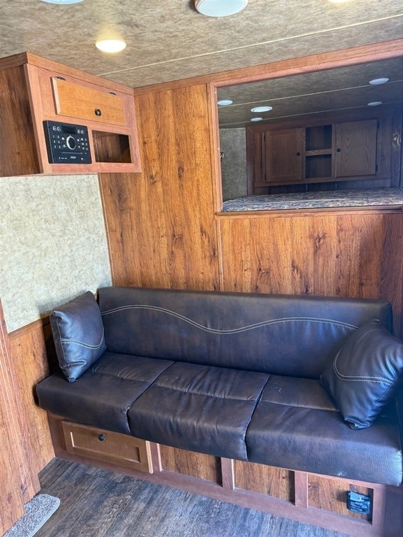 This beautiful 2017 Lakota Charger 3 Horse Trailer features luxurious “Conversions by Lakota” living quarters that comfortably sleep up to eight. The main sleeping area includes steps leading up to a king-size bed, complemented by a leather couch that folds into a bed and a dinette in the slide-out that converts into another. The kitchen is equipped with timeless cabinetry, a flat-top stove, full-size sink, refrigerator, and microwave—perfect for extended stays on the road. The spacious bathroom offers a large shower, toilet, sink, and abundant storage, plus a pass-through door to the horse area. The rear features slant-load stalls with mangers, drop-down windows on both sides, an insulated roof, and a collapsible rear tack. Measuring 29' 6" with an 11'+ short wall, this trailer is in immaculate condition—ready to haul, camp, and travel in comfort.