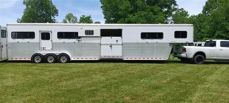 This 2017 Sundowner Transporter 6 Horse trailer offers a premium combination of durability, functionality, and comfort. Built with an all-aluminum construction, it provides a lightweight yet strong frame designed for long-term use. The interior comfortably accommodates six horses with padded dividers and excellent ventilation through roof vents and sliding windows. It features convenient drop-down feed doors and a spacious tack room equipped with saddle racks and bridle hooks for organized storage. Finished with LED lighting and a rear ramp for easy loading, this trailer is ideal for reliable and efficient horse transport. Located in Frankfort, KY 40601 For more information, please call 833-265-6113 and mention ID 77863