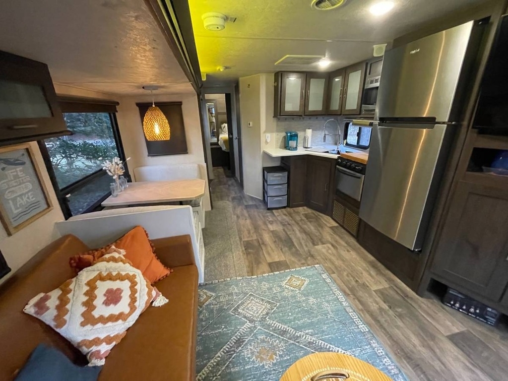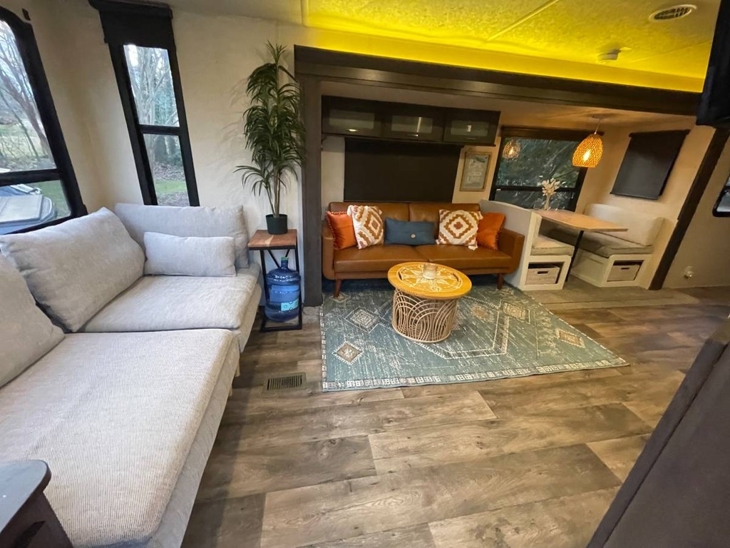 This 2018 Forest River Salem Travel Trailer is a 29’ unit upgraded with new leather furniture, queen memory foam mattress, porcelain Dometic toilet, custom table, and Philips Smart TV on a swivel mount. The bathroom features a circular shower with updated fittings. It includes a power jack, leveling hitch setup, extra-long 30-amp cable, sewer tools, and accessories, making it a turnkey trailer ready for camping or seasonal living. Located in Greensboro, NC 27410 For more information, please call 833-265-6113 and mention ID 90730