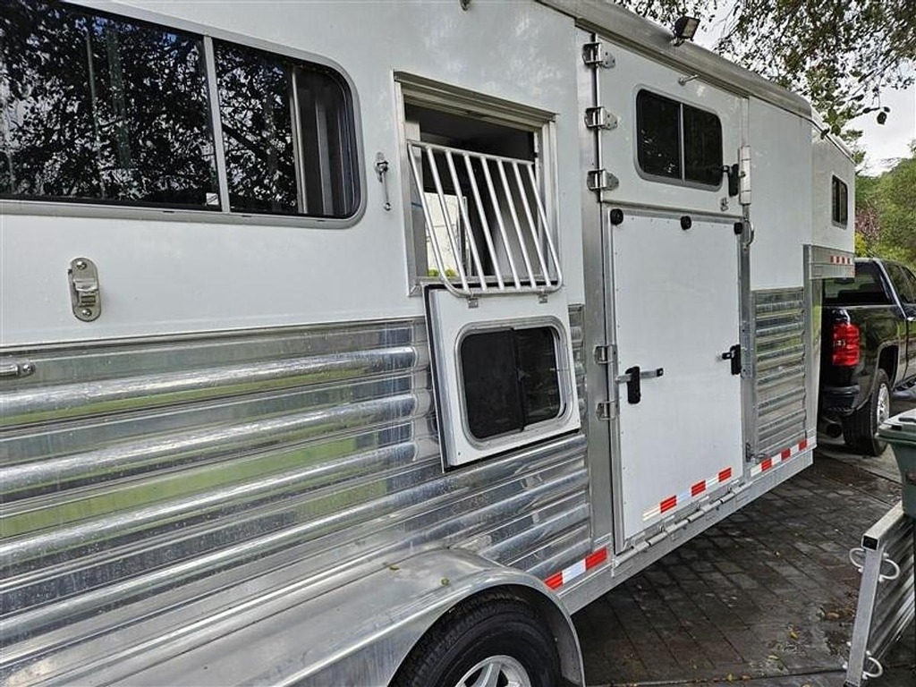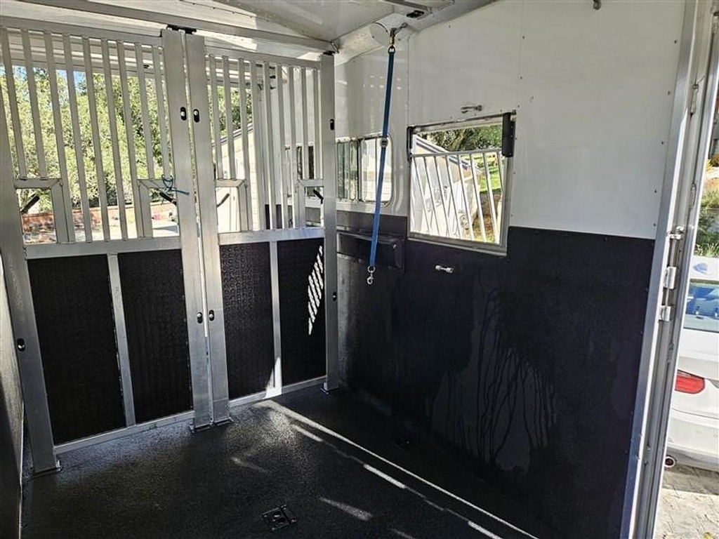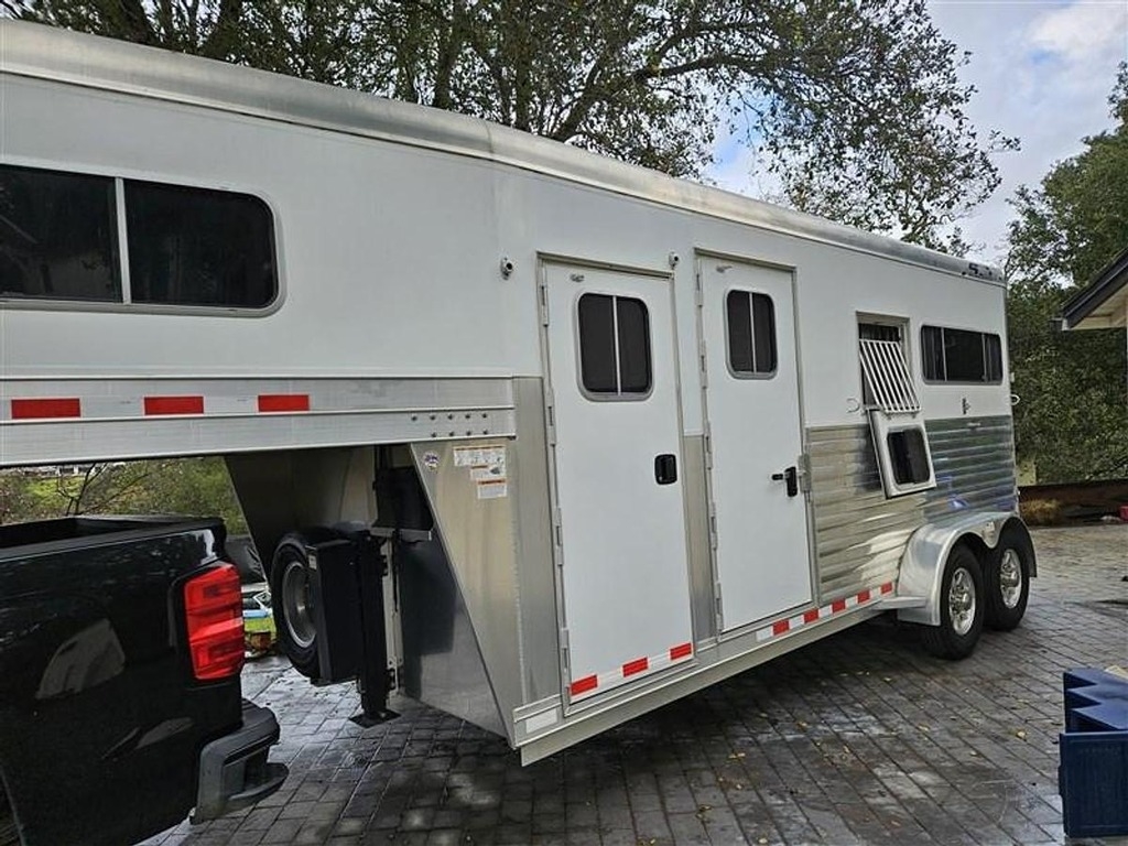 This 2018 4 Star 2 Horse Straight Load gooseneck trailer is an exceptionally clean, lightly used unit that is essentially new in terms of mileage and overall wear. Built with an extra-tall 8-foot interior, this trailer offers a bright, open, and comfortable hauling environment, making it an excellent choice for larger horses or those that are hesitant to load. The straight-load configuration is easily convertible to a box stall with stud gates, and the side ramp allows for an easy reverse-load setup, making it very manageable for solo use. EZ ramps, a hydraulic jack, and drop-down windows further enhance ease of operation and ventilation.