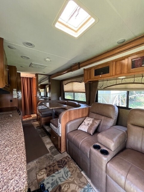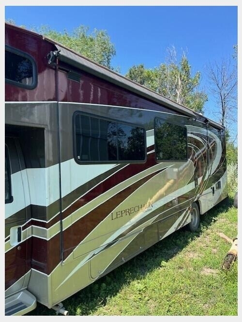 This 2018 Coachmen Leprechaun 319MB Class A Motorhome offers the perfect blend of comfort, style, and functionality for life on the road. It features two spacious slide-outs that expand the living area, along with a cozy fireplace for added comfort on cooler nights. Outside, you'll find an outdoor TV, an outdoor kitchen with a sink, and an outdoor shower—perfect for entertaining or cleaning up after a day of adventure. Chrome wheels add a sleek touch, while the well-appointed interior is packed with premium features throughout. This motorhome is loaded with amenities and ready to hit the road in style.