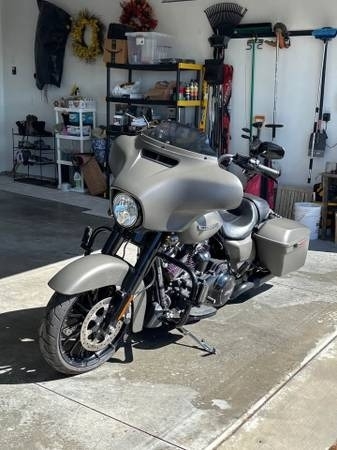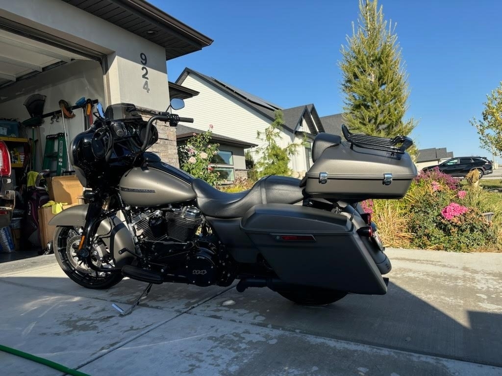Always stored in a heated garage, this 2019 Harley-Davidson Street Glide Special is like new with only 6,000 miles. Finished in striking denim gray with sleek black accents, it features 12” black handlebars for a bold stance and comes equipped with a matching gray hard tour pack topped with a black luggage rack for added storage and style. With its low miles, pristine condition, and premium touches, this bike is ready for you to make your own and enjoy the ride.