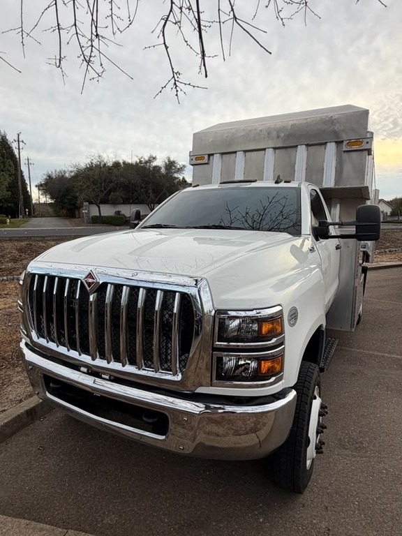 The 2019 International CV515 is a like-new Class 5/6 medium-duty truck chassis, powered by a robust 6.6L Duramax diesel engine that delivers 350 hp and 700 lb-ft of torque, paired with an Allison 6-speed manual transmission. This 4WD truck features a clean title and has only 39,000 miles on the odometer. It boasts a GVWR of 26,000 lbs and is equipped with an aluminum chip box. Additional features include navigation, a DVD player, a backup camera, two air compressors for tool cleaning, a fire extinguisher, and new tires. This vehicle has been serviced at Riverview International, Delgado Equipment, and Les Schwab, and is CA CARB compliant. Located in Orangevale, CA 95662 For more information, please call 833-265-6113 and mention ID 90720