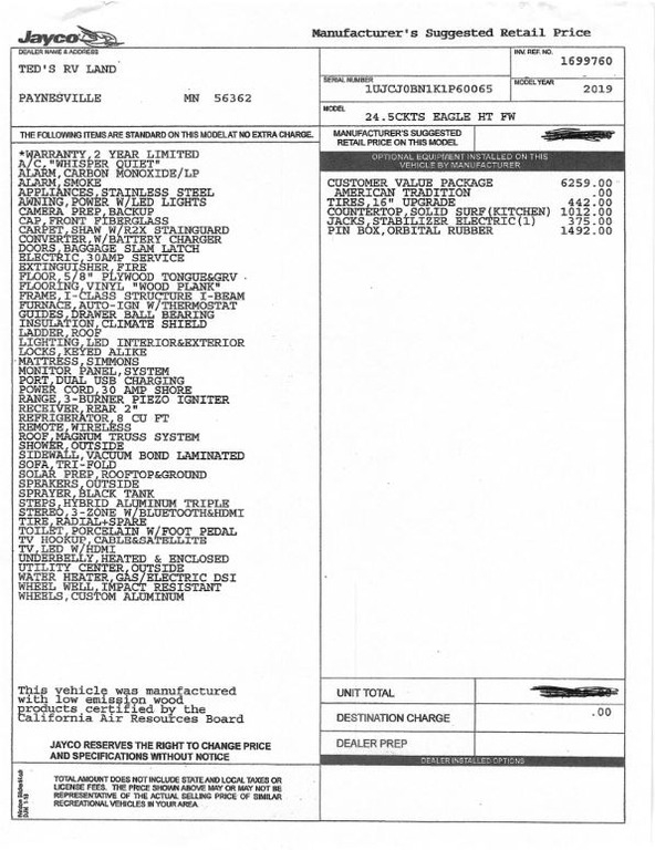Clean and well cared for. Everything listed is factory-installed per the original Jayco build sheet. Normal light use.