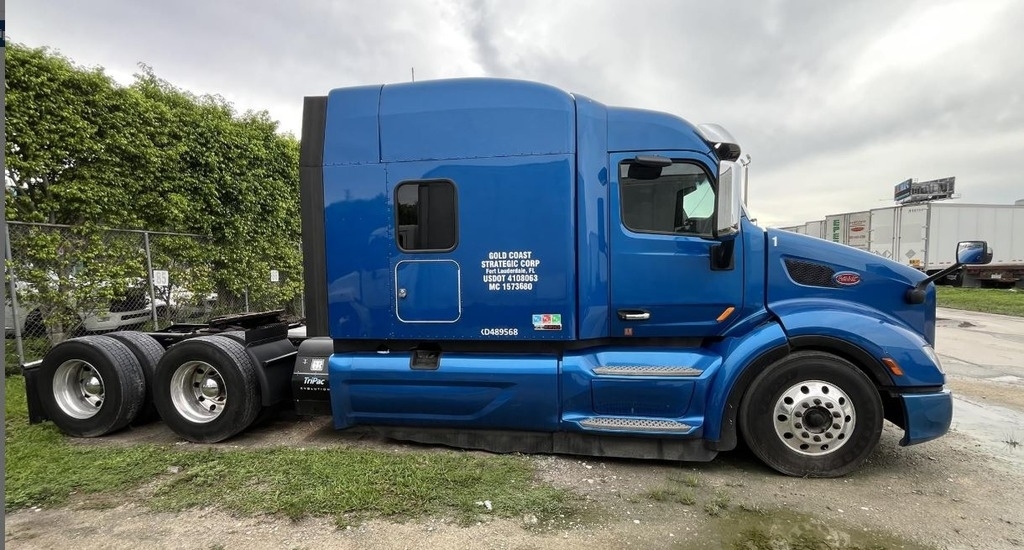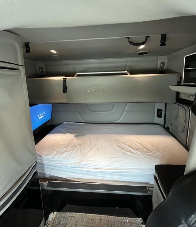 This 2019 Peterbilt 579 is a well-maintained truck powered by a 455 HP PACCAR MX-13 diesel engine paired with a 10-speed automatic transmission. The engine was replaced at Peterbilt and has only 903 hours, with receipts on hand, and the DPF, radiator, hoses, and turbo actuator were also replaced at Peterbilt. Transmission and gear differential fluids have been serviced, and the APU has a new water pump and alternator. It features an upgraded gear differential ratio from 2.64 to 3.08, offering improved performance for hauling heavier loads at highway speeds. Preventive maintenance has been performed every 15,000 miles, and the tires, brakes, and driveshaft are all in good condition. The truck comes equipped with a 6x4 drivetrain, air ride suspension, tandem axles, aluminum wheels, and a mid-roof sleeper with two beds. Inside the cab, you’ll find power locks, air conditioning, cabinets, microwave, refrigerator, TV, APU, inverter, and 200-gallon fuel capacity. There is a small ding on the driver-side sleeper skirt (replacement panel available for about $300), but overall this truck is in excellent shape and ready for the road.