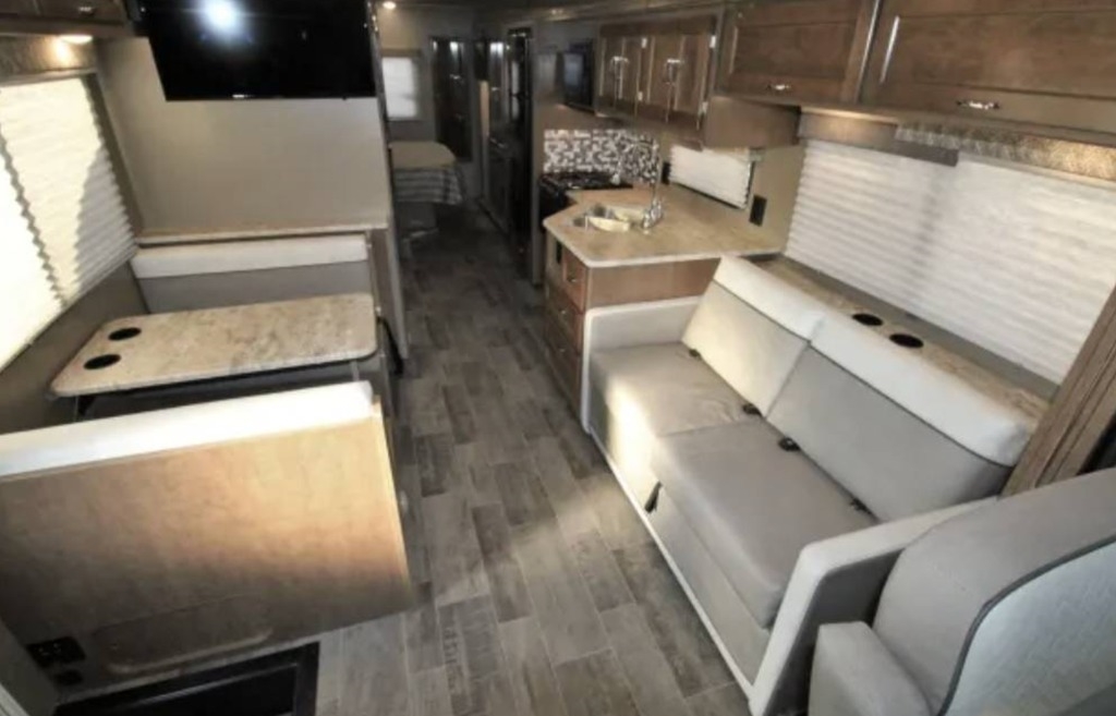 This 2019 Winnebago Intent 29L Class A Motorhome offers a smart floorplan that maximizes comfort and functionality in a compact size. At 29 feet, it features a queen bed (60" x 75") in the rear with ample storage, a full bathroom with shower, and a fully equipped kitchen with pantry, refrigerator, and three-burner range. The living area includes a dinette (40" x 64"), sofa/bed (40" x 60"), and an optional powered StudioLoft bed (52" x 77") for additional sleeping space. With multiple TV locations, a spacious slide-out, and thoughtful details like a multi-position cab table, this motorhome is designed for both travel convenience and residential comfort. Ideal for family trips or extended adventures, the Winnebago Intent 29L combines quality construction with practical design in a stylish package.