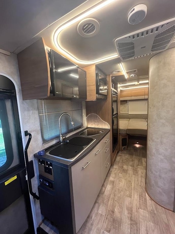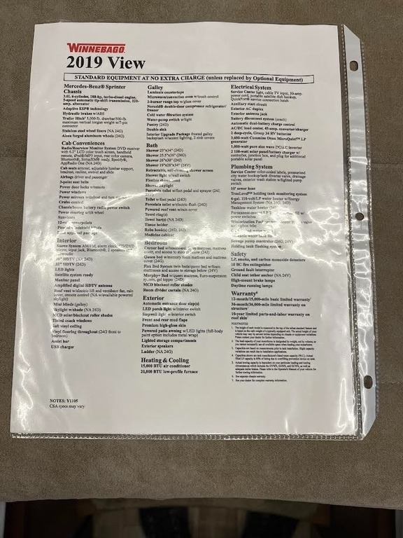 The 2019 Winnebago View 24V Class C Motorhome offers the perfect combination of luxury, performance, and practicality, all built on the dependable Mercedes-Benz Sprinter chassis. Featuring stunning full body paint and beautiful maple woodwork throughout, this motorhome is as stylish as it is functional. Inside, you’ll find thoughtful amenities like an overhead sleeper, sofa sleeper, and a queen bed in the rear, providing ample sleeping space. Comforts include a roof A/C unit, electric patio awning, day and night shades, and a backup camera for added convenience. The single slide-out opens the living space nicely, while entertainment needs are met with a flat-screen TV and premium sound system. The kitchen is fully equipped with a cooktop, convection microwave/oven combo, and a top-to-bottom refrigerator, making it ideal for both weekend getaways and extended adventures.