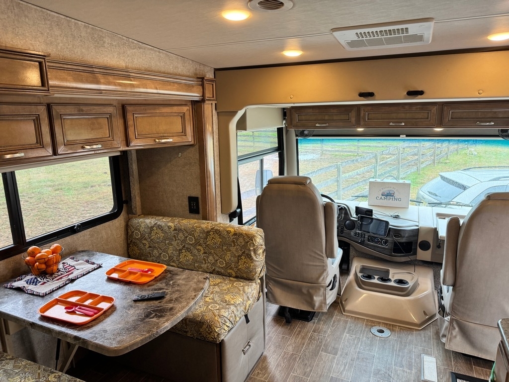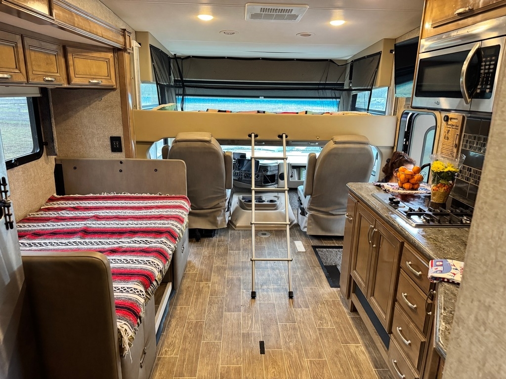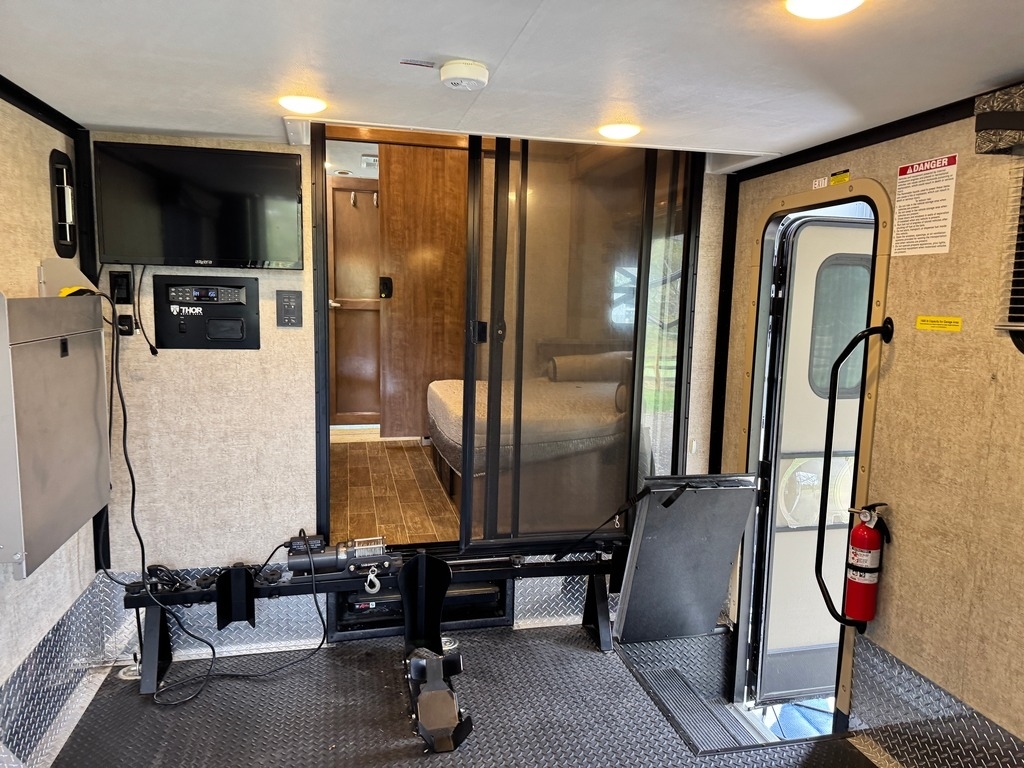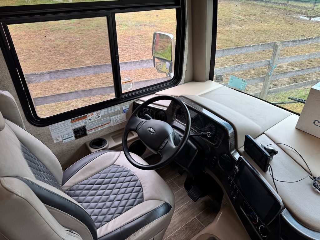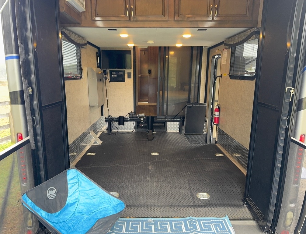 This motorcoach was our dream home on wheels, and it deserves to be enjoyed, not stored away. It’s fully equipped, well-maintained, and ready for your next adventure. Built on a 2019 Ford chassis with a 6.87L V10 engine and 320 horsepower, this 38-foot Class A toy hauler has just 15,000 miles. It features two slide-outs, an 8x10 rear garage with a winch and wheel chock system (perfect for a motorcycle and bikes), and a sleeping capacity of 7+ including a sky bunk, queen bed, loft, and convertible dinette.