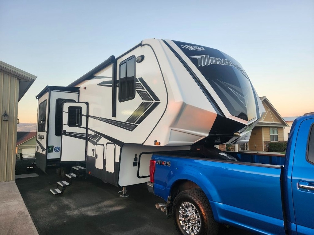 This 2020 Grand Design Momentum G-Class 350G is a BEAUTIFUL, like-new fifth wheel toy hauler that’s loaded with upgrades and in very clean condition. It features a spacious 14' garage area, bath and a half, and sleeping for up to 7, making it perfect for families or groups. Comfort amenities include a heated and massage couch, oversized refrigerator/freezer, washer and dryer hookups, and an extra bathroom for added convenience. Additional highlights include an onboard Cummins generator, an onboard fueling station, and modern finishes throughout. A premium toy hauler designed for both adventure and luxury.