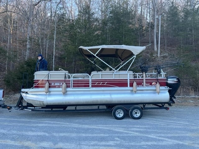 2020 Suntracker Sport Fish Deluxe This 2020 Suntracker Sport Fish Deluxe pontoon is in like-new condition and designed for both leisure and fishing versatility. Powered by a Mercury 115 HP engine and equipped with a Minn Kota 80 thrust trolling motor, this boat delivers reliable performance on the water. It features ample storage throughout, a live well, and removable electric cannon downriggers for fishing convenience. A three-bank charger supports the trolling batteries, while additional batteries power onboard systems. The custom enclosure allows for comfortable use in cooler weather, and the spacious layout includes multiple seating areas and a removable table. This pontoon is well-equipped for both relaxation and serious fishing outings. Located in Independence, KY 41051 For more information, please call 833-265-6113 and mention ID 90829