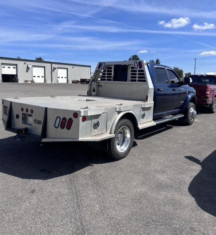 Laramie edition 2020 Dodge Ram 4500HD flatbed truck with 112,000 miles. This used but well-maintained vehicle is equipped with an automatic transmission and a 4x4 drive, making it ideal for various terrains. Featuring a single rear axle, the truck's interior is designed with practicality in mind, offering left-hand drive, cruise control, and power locks. The air conditioning is in excellent condition, ensuring a comfortable driving experience. Previously utilized for pulling livestock, this robust and reliable truck combines durability with modern comforts to meet your heavy-duty transportation needs.
