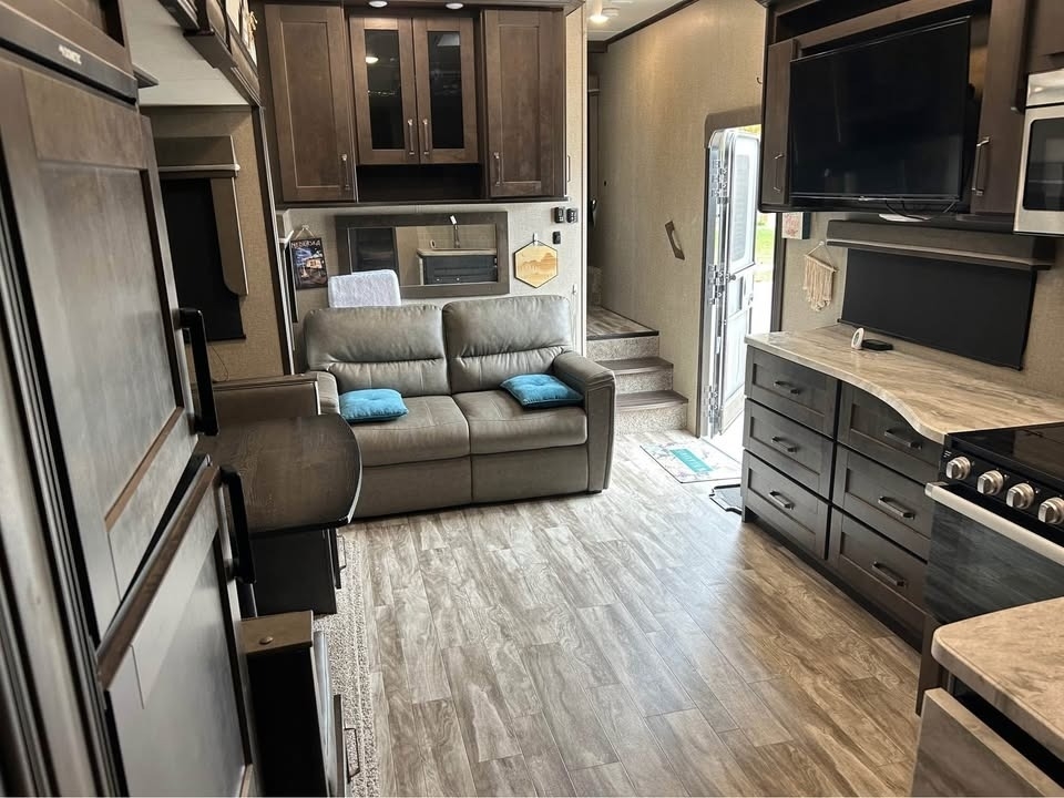 This 2021 Grand Design Reflection 278BH fifth wheel is in like-new condition and includes a premium Andersen hitch. Measuring 33 feet long and half-ton towable, it offers a family-friendly layout with oversized bunks, a private master suite, and a spacious living area with theater seating and panoramic windows. The kitchen features solid surface countertops, stainless sink, large fridge, oven, and microwave. Enjoy year-round comfort with ducted A/C and furnace, plus an outdoor kitchen, LED awning, and ample storage. Upgrades include a Blackstone griddle and two additional TVs. Located in La Vista, NE 68138 For more information, please call 833-265-6113 and mention ID 86106