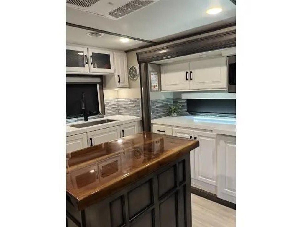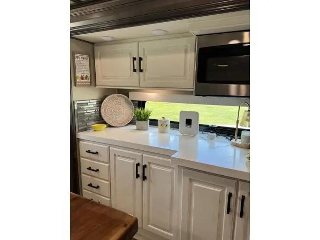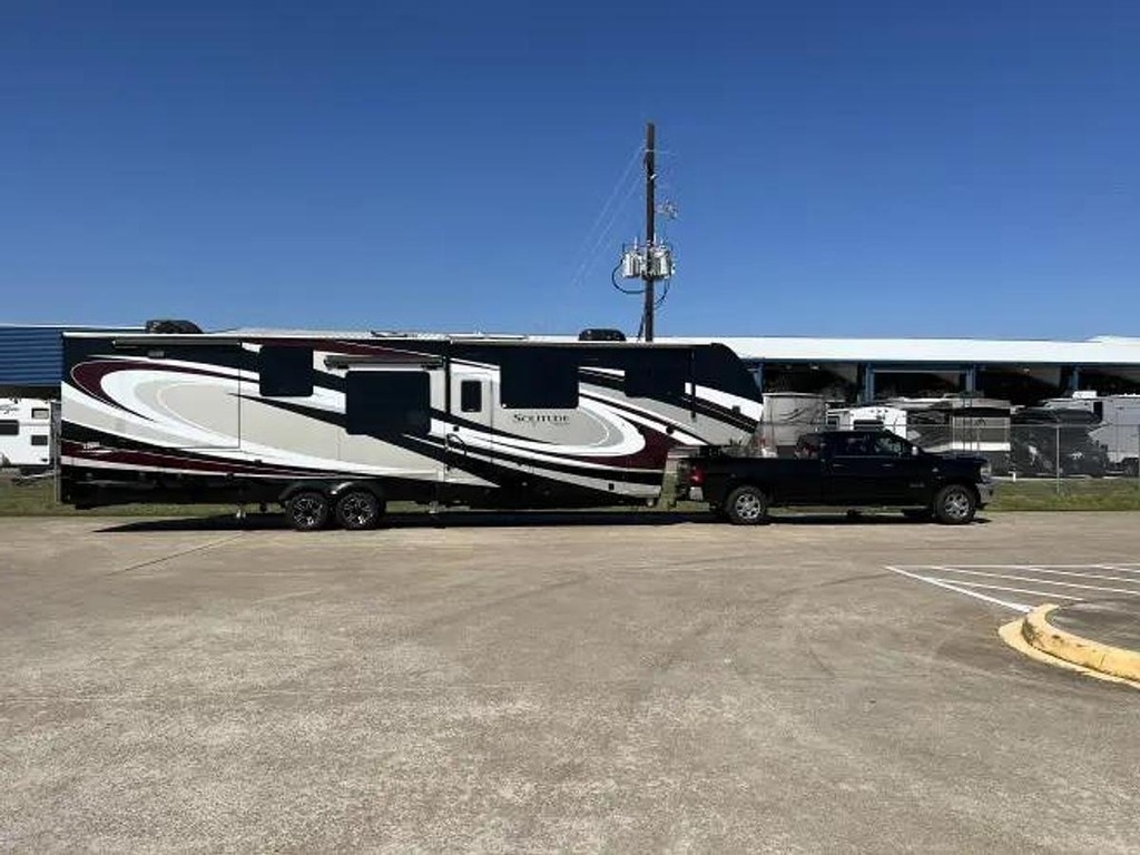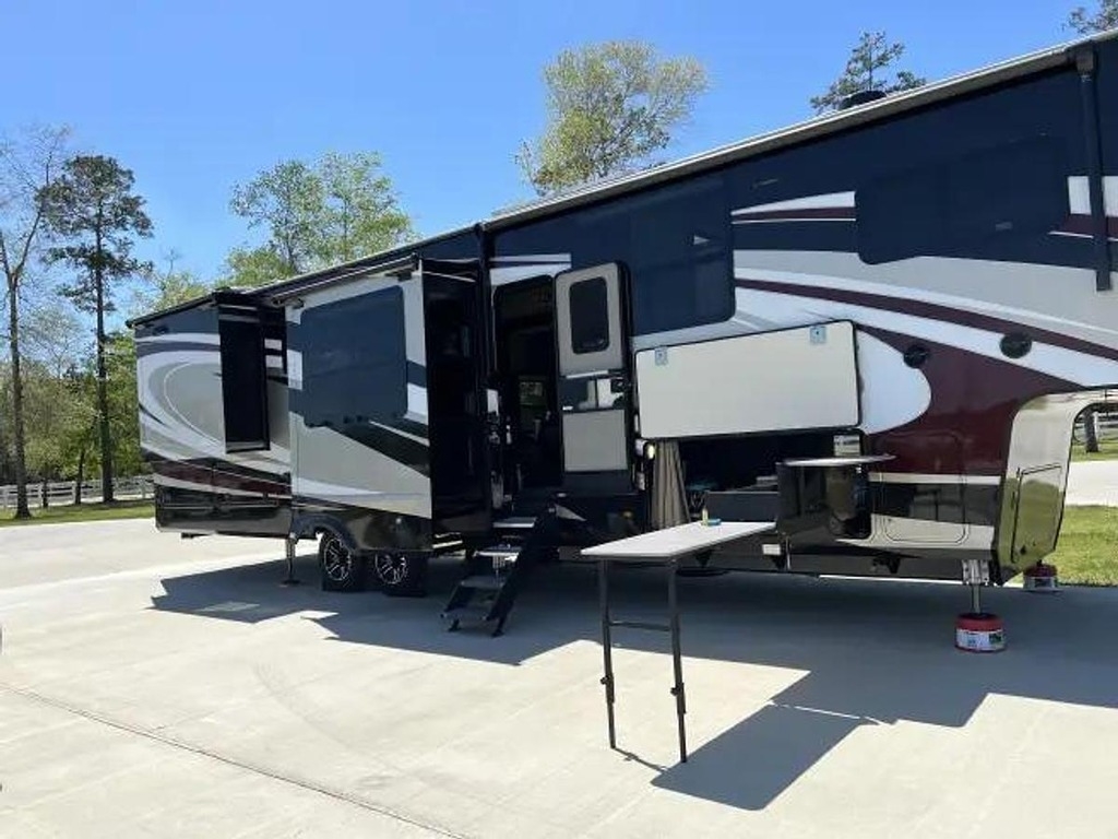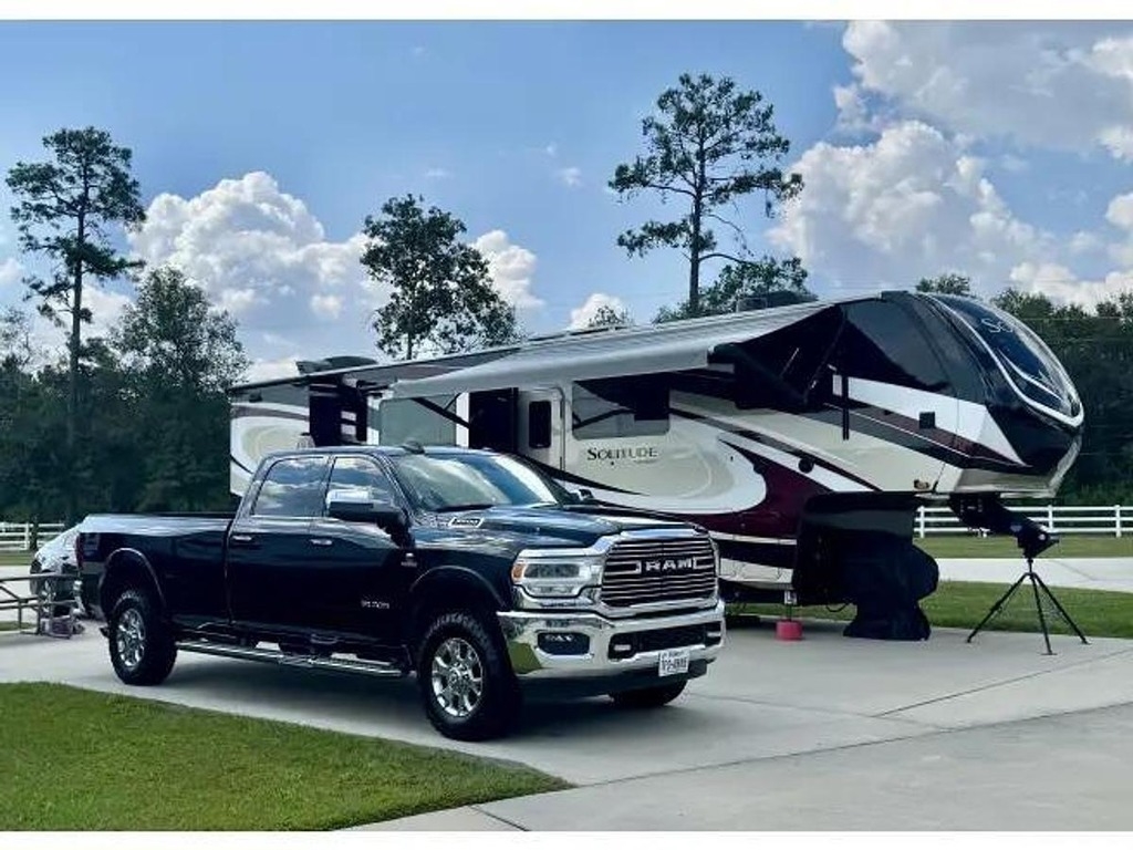 Whether you are planning a weekend getaway or a long-term road trip, the Grand Design Solitude 390RK-R has everything you need to make your travels comfortable and enjoyable. Don't miss out on the opportunity to own one of the finest fifth wheel RVs on the market. Upgrade your camping experience with the Grand Design Solitude 390RK-R today! Upgraded features include Factory installed propane Cummings generator, washer/dryer, Solar panels, outdoor kitchen with griddle, custom paint with ceramic coating for UV resistance, custom painted kitchen and custom backsplash, black walnut island countertop and kitchen dining top, silicone sealant roof UV protection, automatic dish satellite with Wally receiver, rear and side cameras with Bluetooth wireless monitors and slide out awning covers.