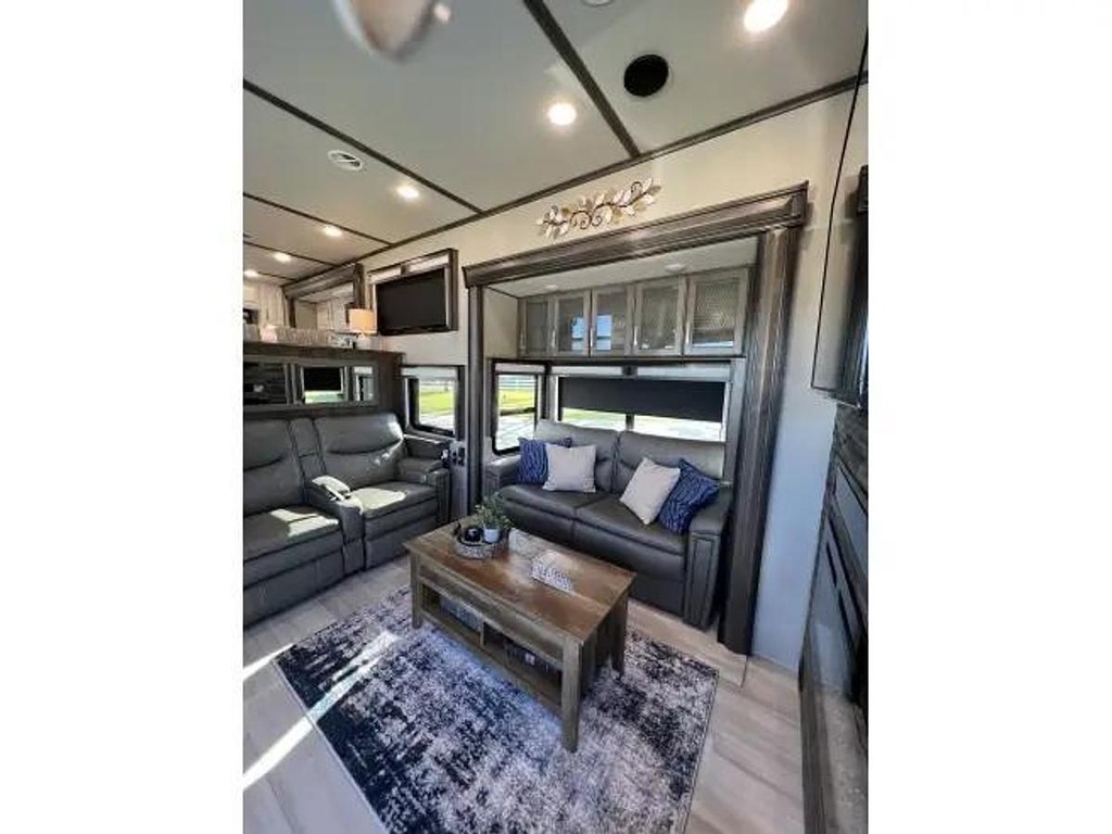 The 2021 Grand Design Solitude 390RK-R is a luxurious fifth wheel RV designed for those seeking the ultimate in comfort and style. With only 500 miles on the odometer, this practically brand-new RV is ready to hit the open road and take you on your next adventure. The Grand Design brand is known for its high-quality construction and attention to detail, and the Solitude model is no exception.