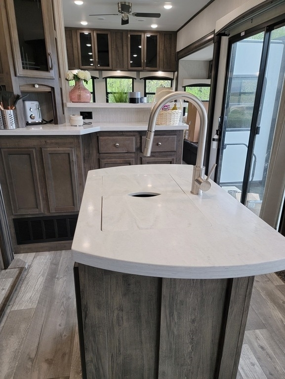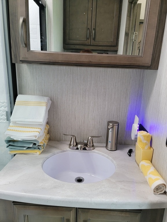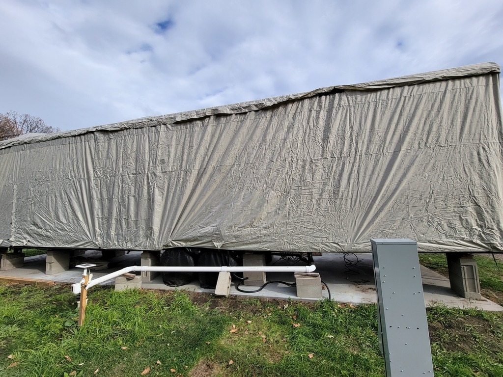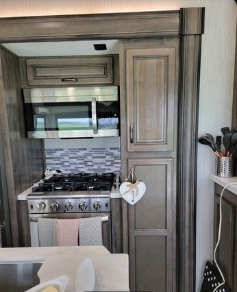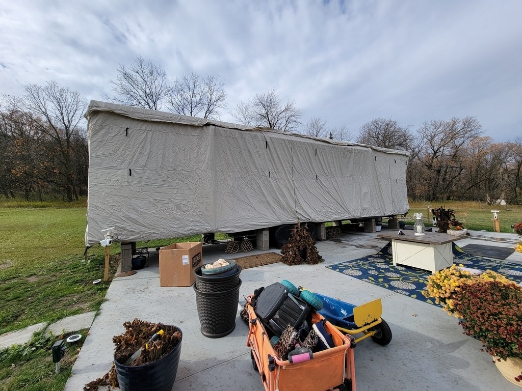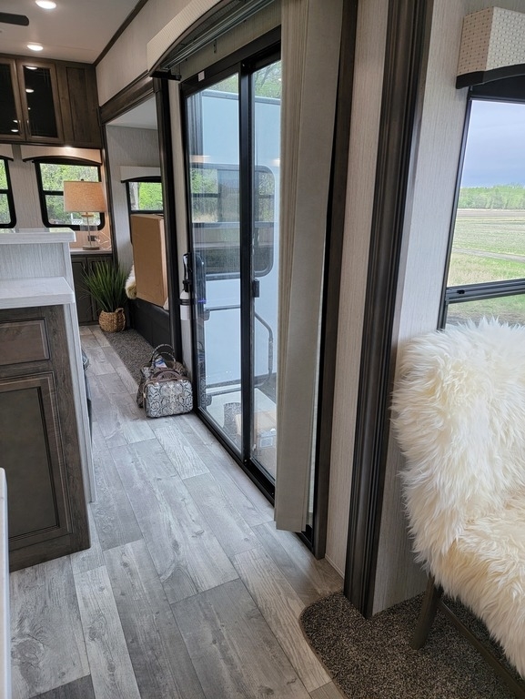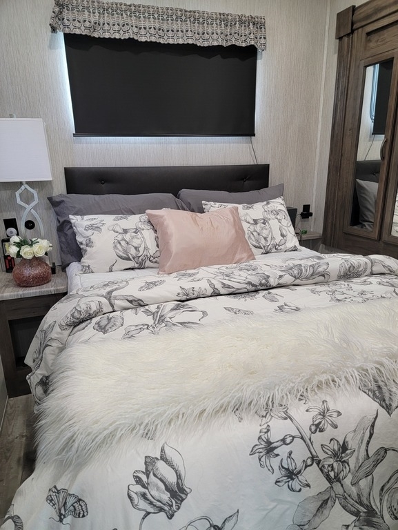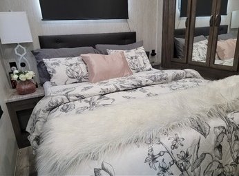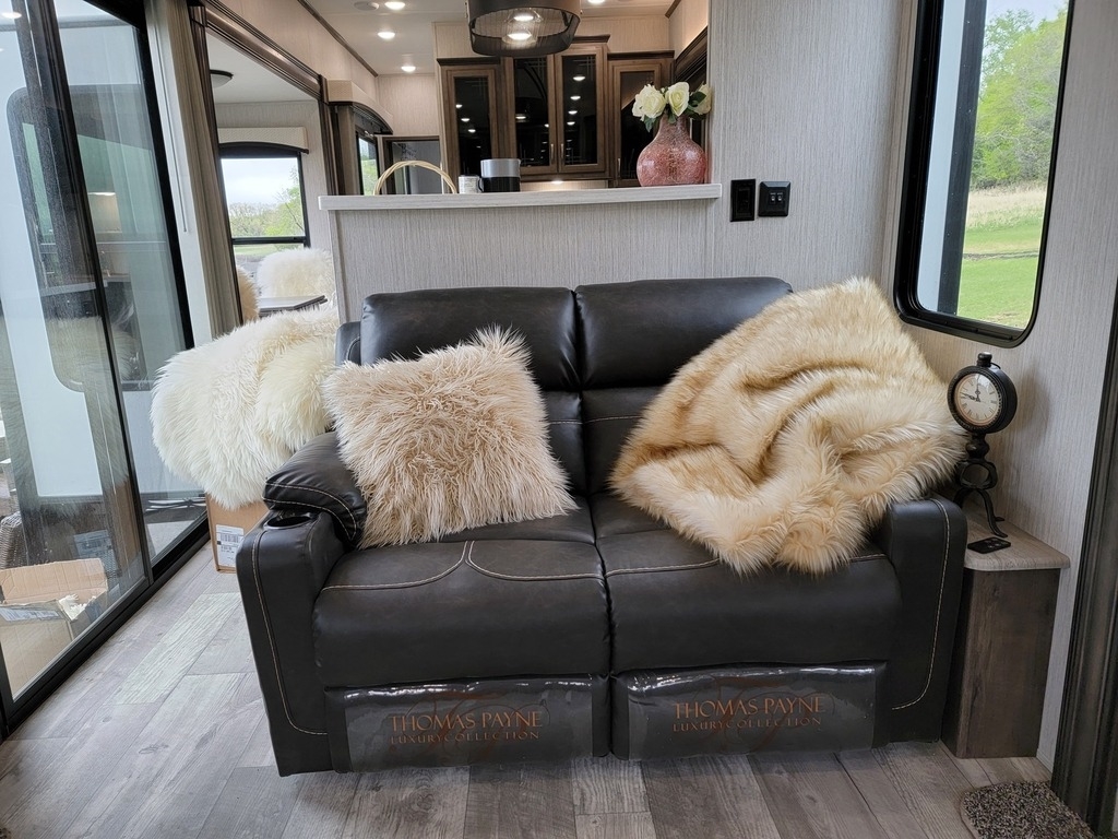 This 2021 Forest River Sierra Destination 420FL Park Model is a spacious and luxurious travel trailer designed for extended stays and comfortable living. The stylish, modern 420FL floorplan features a large front living room with two comfortable foldout sofas, two recliners, and a cozy fireplace, creating a warm and inviting space. The kitchen is equipped with high-end, residential-sized appliances, a center island, and dual countertops for added workspace and functionality. The bedroom includes a queen-sized bed and a wardrobe closet prepped for a stackable washer and dryer, while a central vacuum system and abundant storage enhance everyday convenience. The private bathroom offers a shower and separate toilet, and the unit is shaded by a 21-foot awning for outdoor comfort. This trailer has been completely covered during winter months to protect the exterior and has been kept in pristine condition inside and out. Buyer must relocate the camper.